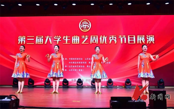 大學生曲藝周是由中國曲協、山東省文聯和青島市委宣傳部、青島市文聯等單位共同打造的全國唯一的大學生曲藝專項品牌活動。本次活動由山東省曲協、青島市曲協、中共李滄區委宣傳部承辦。本屆展演共征集到111個作品,涉及35個曲種,經專家遴選,最終確定了21個曲種的37個優秀節目參加展演。經過激烈的角逐,其中由遼寧科技大學選送,姜涵瀚、趙開山創作,表演2020級劉星宇、馮宸穎、孫夢菲,播主2022級劉柯冉表演的群口快板《中國詩民族魂》和由張宇、胡曌斌創作,表演2021級劉羽檬、張譯文表演的相聲《女神養成記》,兩部作品均成功入選第三屆大學生曲藝周。群口快板《中國詩民族魂》在山東大學(青島校區)展演;相聲《女神養成記》在青島科技大學展演。展演現場氣氛熱烈、專家老師們給予了高度評價,表示遼科大選送的2個節目“內容好、形式好、表演好、呈現好,為大家帶來了精彩的高水平表演”,也受到了現場觀眾的喜愛。
