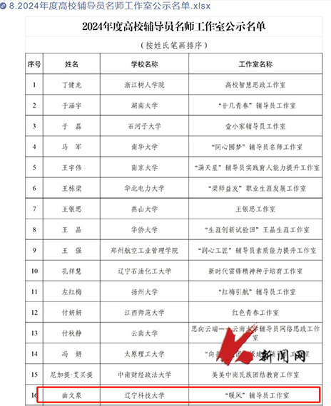 近日,教育部公布“2024年度高校思想政治工作質量提升綜合改革與精品建設項目遴選結果”,遼寧科技大學“暖風”輔導員工作室入選“2024年度高校輔導員名師工作室”。