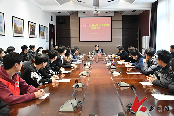 校團委書記禹哲主持座談會。會上,藝術學院教師張金玲介紹了舞臺劇整體情況。相關部門負責人、師生代表對舞臺劇的道具布陳、聲光配合、人物塑造、與觀眾的互動等方面提出了意見及建議。
