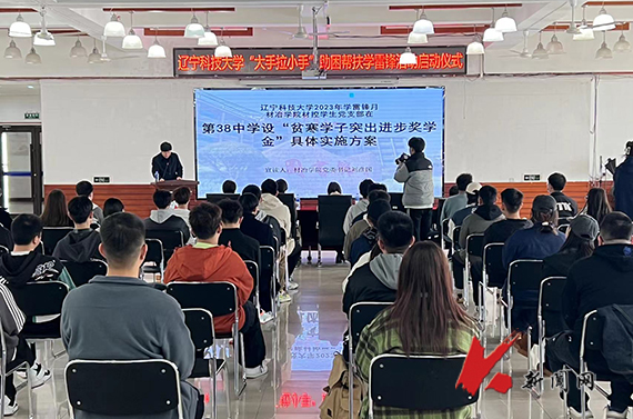 儀式上,宣讀了材冶學院學生材控黨支部在鞍山市第38中學設立“貧寒學子突出進步獎學金”的助困幫扶計劃。材冶學院20名志愿者對接38中學20名家庭經濟困難學生,為他們捐贈書包等學習用品,后續將為其提供學業以及生活上的精準幫扶。