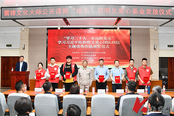 會上,進行了“學習二十大 永遠跟黨走”深入學習習近平總書記給郭明義愛心團隊回信精神主題作品展示及頒獎儀式,舉行了“暖風”郭明義愛心基金捐贈儀式。黨委學生工作部部長紀振廷主持會議并代表學校接受愛心基金。今年,“暖風”郭明義愛心團隊將愛心基金4萬元增加到6萬元,資助了60名學校貧困學生,以此紀念毛澤東等老一輩革命家為雷鋒同志題詞60周年。