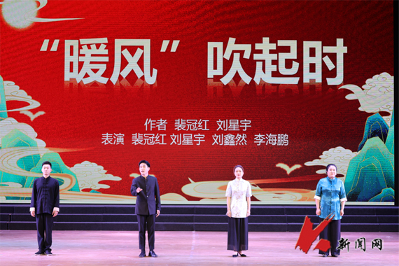 藝術學院教師裴冠紅與表演2020級劉星宇共同創作,與劉鑫然、李海鵬四人表演的群口評書《“暖風”吹起時》,用評書特有的藝術形式生動再現了郭明義和遼科大輔導員曲文泉成功救助土木學院2009級患再生障礙性貧血的學生段懿的故事。張漢霄、代康康帶來的經典快板作品《學雷鋒》用接地氣的語言講述雷鋒的成長經歷和感人事跡。霍圣杰、白鵬渝的相聲《這事我得管》在捧逗之間用詼諧的話語演繹了“學雷鋒”路上遇到的窘事。郝佳昕、李佳琦、劉星宇、孫夢菲、徐丙瑞帶來的音樂快板《咱們都是郭明義》道出了郭明義“學雷鋒”的點點滴滴,號召大家向郭明義同志學習。演出以李俊杰、周壯的原創相聲《一條朋友圈》壓軸,兩位老師用幽默風趣的語言講述了電腦包失而復得的過程。