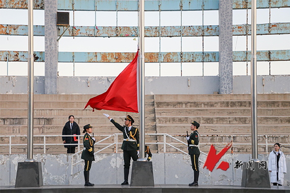 早上6點30分,升旗儀式正式開始。國旗護衛隊邁著鏗鏘有力的步伐,氣宇軒昂地走向升旗臺。伴著莊嚴的國歌聲,五星紅旗在全體師生的注目禮中冉冉升起。