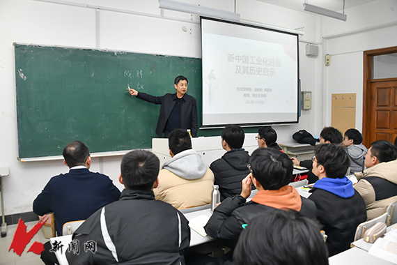 11月30日,遼寧科技大學黨委常委、副校長李勝利教授在博學樓B210教室,為機設2021級1、2、3班的學生上了一堂題為《中國工業化的輝煌成就》的思想政治理論課。