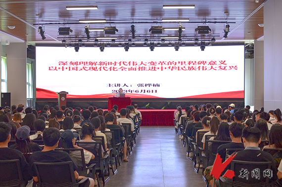 6月6日在藝術館多功能廳,學校理論宣講團成員、校機關黨委書記張樺楠為建筑與藝術設計學院、藝術學院與體育部師生代表作題為《深刻理解新時代偉大變革的里程碑意義 以中國式現代化全面推進中華民族偉大復興》宣講報告。