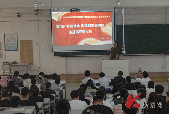 6月13日下午,學校理論宣講團成員、經濟與法律學院副院長溫馨在博學樓C202,為馬克思主義學院、應用技術學院、后勤與基建管理處、電子與信息工程學院四個單位的師生代表作題為《貫徹新發展理念 構建新發展格局 推進高質量發展》的宣講報告。800余名師生參加學習。