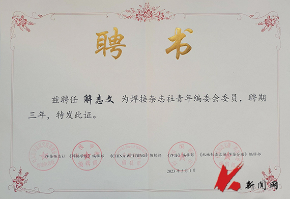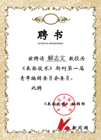 近日,《表面技術》《焊接雜志社》編輯部分別成立青年編輯委員會,遼寧科技大學解志文教授被聘為青年編輯委員會委員。