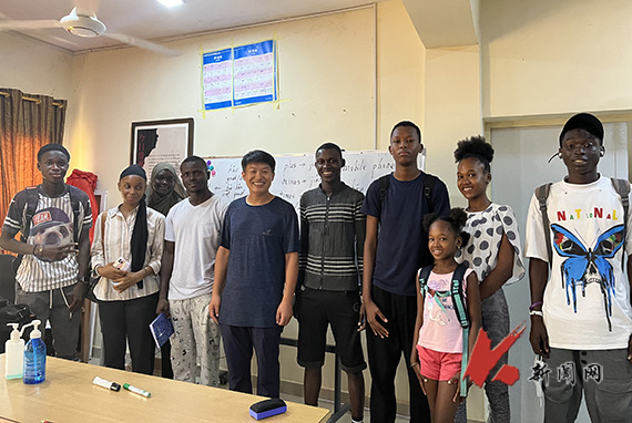 7月中旬,中國(遼寧)第六批援岡比亞醫療隊免費中文課在岡比亞大學孔子學院正式開課,這堂課程的主講人正是舒靜偉。授課前,他廣泛宣傳,招募學生,并為中文課專門編寫了教材,同時配合HSK教程進行講授。該學習班每周六10點至12點授課,線上線下同步進行。除課堂教學外,他還在日常生活中奉獻自我,幫助當地人民鞏固所學的漢語知識。