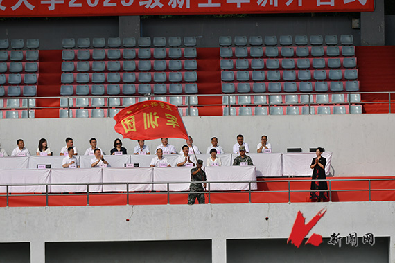 軍訓團團長、校黨委副書記孫曉華為軍訓團授團旗。軍訓團副團長張佳亮、李寧、郭志輝,軍訓團參謀長禹哲分別為各中隊授中隊旗。2023級新生軍訓由此拉開帷幕。(供稿單位:武裝部 圖片來源:宣傳部 金會剛 大通社記者 鄭志遠)