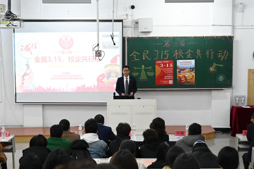 3月14日,經(jīng)法學(xué)院攜手東方財富證券鞍山營業(yè)部在博學(xué)樓C102開展第二屆“全民3.15,校企共行動”主題活動。東方財富證券鞍山南勝利路營業(yè)部及中國人民銀行鞍山市分行、鞍山市公安局經(jīng)偵支隊金融大隊一行15人、經(jīng)法學(xué)院黨政領(lǐng)導(dǎo)及輔導(dǎo)員7人出席活動,學(xué)院近270名學(xué)生參加了本次活動。