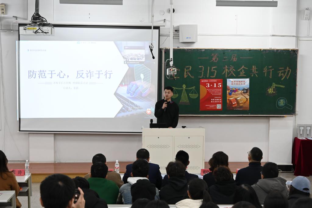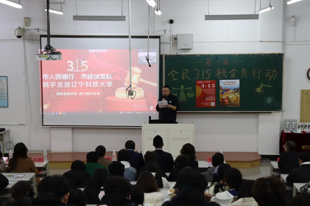 活動伊始,東方財富證券鞍山南勝利路營業(yè)部總經(jīng)理吳超發(fā)表講話,強調(diào)了本次活動對學(xué)生金融知識教育和風險防范意識培養(yǎng)的重要性,肯定了校企合作在金融知識普及方面的積極意義。在宣講環(huán)節(jié),來自中國人民銀行鞍山市分行、鞍山市公安局經(jīng)偵支隊的專家、東方財富證券的工作人員以及經(jīng)法學(xué)院的學(xué)生代表帶來了豐富且實用的內(nèi)容。從反洗錢、反詐防騙、反假幣知識,到資本市場刑事犯罪風險、非法薦股陷阱剖析,通過實際案例分析,為同學(xué)們敲響金融安全警鐘。互動提問環(huán)節(jié),同學(xué)們踴躍發(fā)言,就關(guān)心的金融熱點和風險防范問題與嘉賓交流。東方財富證券鞍山南勝利路營業(yè)部為參與互動的同學(xué)們贈送了精美紀念品。