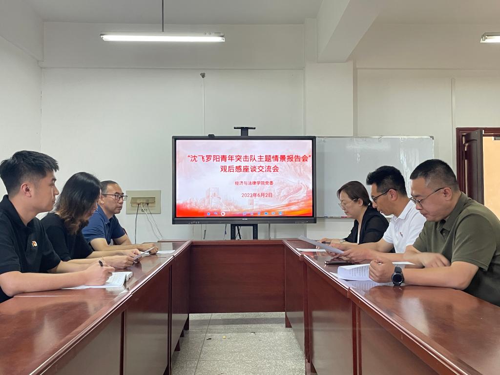 2023年6月2日,遼寧科技大學經濟與法律學院在博識樓A313召開觀看“沈飛羅陽青年突擊隊主題情景報告會”觀后感座談交流會。會議由學院黨委書記趙智博主持,學院領導班子全體成員和輔導員參加。