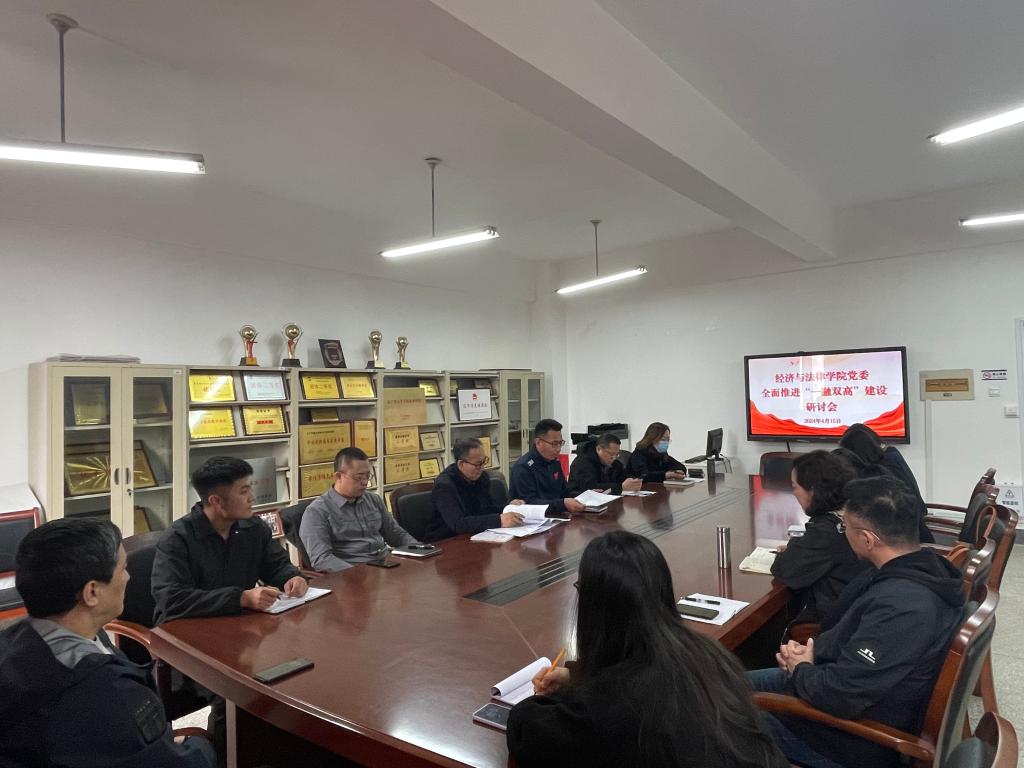 為貫徹落實學校黨委關于全面推進“一融雙高”建設的指導意見,4月15日,經法學院在博識樓A305召開推進“一融雙高”建設研討會。會議由院長郭浩淼主持,學院黨委成員、黨支部書記和系主任參加會議。