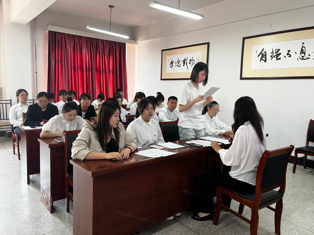 經(jīng)法學院學生第一黨支部、學生第二黨支部以及學生第三黨支部分別召開接收新發(fā)展黨員大會。大會嚴格按照基層黨組織接收黨員的程序,審議并表決通過了孫詩博等18名同志由黨員發(fā)展對象轉(zhuǎn)為中共預備黨員的相關事宜。會上,18名黨員發(fā)展對象宣讀入黨志愿書,分別從對黨的認識、入黨動機、思想狀況、本人履歷等方面進行匯報。隨后,各入黨介紹人從政治思想、學習成績、生活作風、工作能力等方面介紹黨員發(fā)展對象的主要情況,對18名發(fā)展對象的表現(xiàn)給予了充分肯定,同時要求他們在今后繼續(xù)加強理論知識的學習,不斷鞏固自己的黨性修養(yǎng),時刻以黨員的標準嚴格要求自己,發(fā)揮模范帶頭作用。支部委員會報告對發(fā)展對象的審查情況。與會黨員對孫詩博等18名發(fā)展對象是否符合黨員條件發(fā)表意見,對發(fā)展對象能否入黨進行全面評定,討論后與會黨員表明孫詩博等18位同志已基本具備黨員條件,建議吸收為中共預備黨員。經(jīng)各支部有表決權的正式黨員討論并通過無記名投票表決,一致同意接收孫詩博等18名發(fā)展對象為中共預備黨員的決議。隨后,18名發(fā)展對象作表態(tài)發(fā)言,他們闡明了自己入黨的決心,表示將時刻牢記為人民服務的宗旨,堅持學習黨的理論知識,提高黨性修養(yǎng),不斷提高自己的政治素質(zhì)和綜合能力,更好地履行自己的職責和使命。最后,支部正式黨員為新發(fā)展的預備黨員佩戴黨員徽章,并囑咐各預備黨員要始終牢記黨員身份,發(fā)揮先鋒模范作用。在學生黨支部書記的帶領下,新黨員進行入黨宣誓,許下對黨的莊嚴承諾。