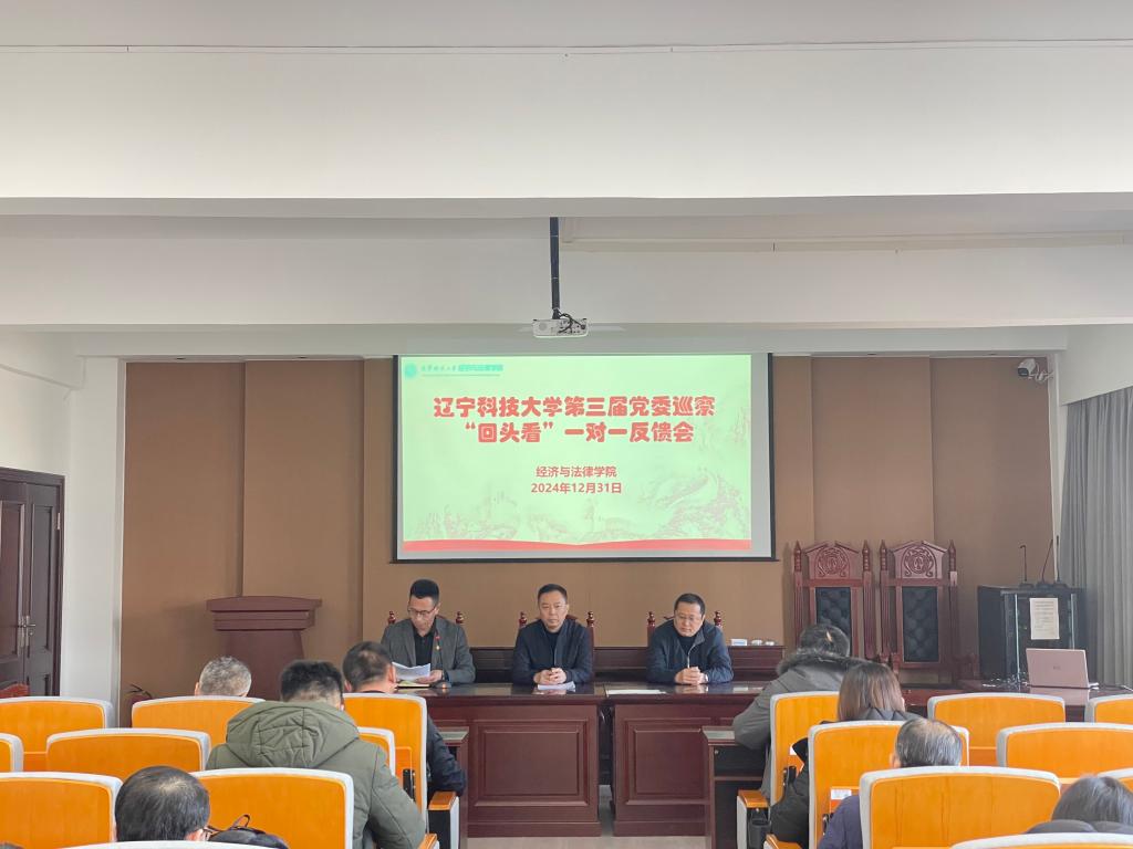 根據黨委巡察工作領導小組的部署,2024年12月31日,黨委巡察組在博識樓A402向經法學院黨委反饋了巡察“回頭看”情況。院長郭浩淼主持會議,巡察組組長陳功慶同志反饋巡察“回頭看”情況,院黨委書記趙智博同志作表態發言。