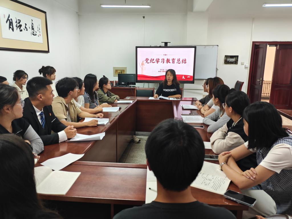 會議強調,要推進黨紀學習教育常態化長效化。要進一步學習貫徹習近平總書記重要指示和學校學院關于黨紀學習教育有關會議精神,切實把黨紀學習教育成果持續轉化為推進黨的建設的強大動力。要持續深化理論武裝,不斷強化政治意識和政治規矩,持續加強黨的紀律建設、深入推進黨風廉政建設和反腐敗斗爭,堅持融入日常、抓在經常,激勵黨員干部擔當作為,為學校高質量發展做出經法貢獻。