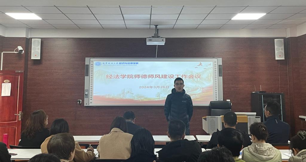 3月26日,經(jīng)法學(xué)院在博識(shí)樓A407召開師德師風(fēng)建設(shè)工作會(huì)議。會(huì)議由學(xué)院黨委書記趙智博主持,學(xué)院全體教職工參加會(huì)議。