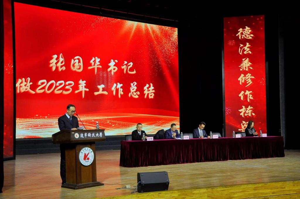 12月13日是南京大屠殺死難者國家公祭日,表彰會前全體師生共同默哀,深切緬懷大屠殺死難同胞,共祭民族之殤,激勵學生銘記歷史,勿忘國恥,為實現中華民族偉大復興的中國夢不懈奮斗。默哀禮畢,全體師生共同觀看了學院2023年各項學生活動的混剪視頻,回顧了經法學院在這一年中開展的各項學生工作以及所取得的驕人成績,大家心中充滿了無限感慨與對未來的憧憬。表彰會在全體師生共同奏唱中華人民共和國國歌聲中拉開序幕。學院黨委副書記張國華作2023年學生工作總結報告,他對一年來學院在思想教育、日常管理、學風建設、考研就業、志愿服務等工作進行了全面總結,并指出學院將在提高學生英語四級通過率、就業率、考研率,提高學生學習積極性,培養學生良好生活習慣,加強學工隊伍建設方面作進一步規劃與提升。