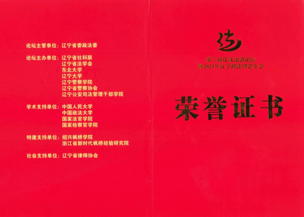 近日,在遼寧省委政法委主辦的第三屆“遼沈法治論壇”暨2023年遼寧政法理論年會征文活動中,經法學院法碩研究生獲得佳績。其中,由邵玲副院長所指導學生王圣傑榮獲一等獎,陳辛迪老師所指導學生邱喜晨榮獲二等獎。