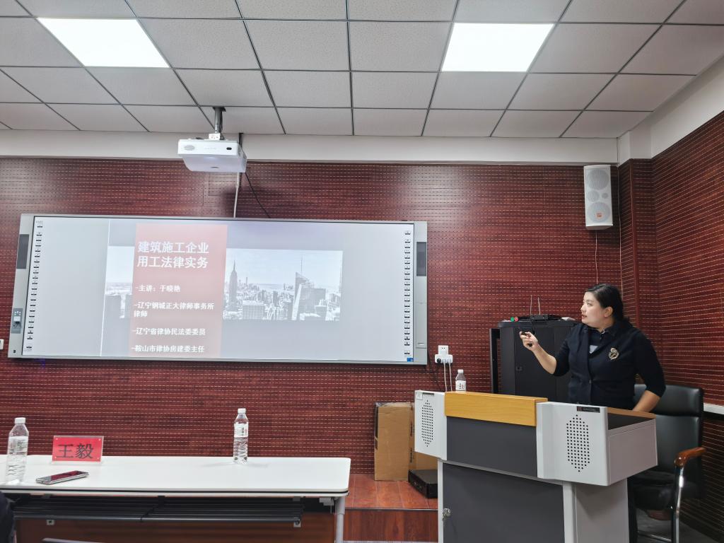11月19日,經法學院邀請鞍山市律師協會房地產與建設工程委員會主任于曉艷和秘書長王毅出席法碩專業建設工程法律實務講座,并作題為“建筑施工企業用工常見問題法律實務分析”和“建設施工合同無效的認定及其法律后果”的講座。本次講座由學院法律碩士中心主任武婷婷主持,學院副院長邵玲、相關法碩教師及2023級全體研究生到場聆聽。