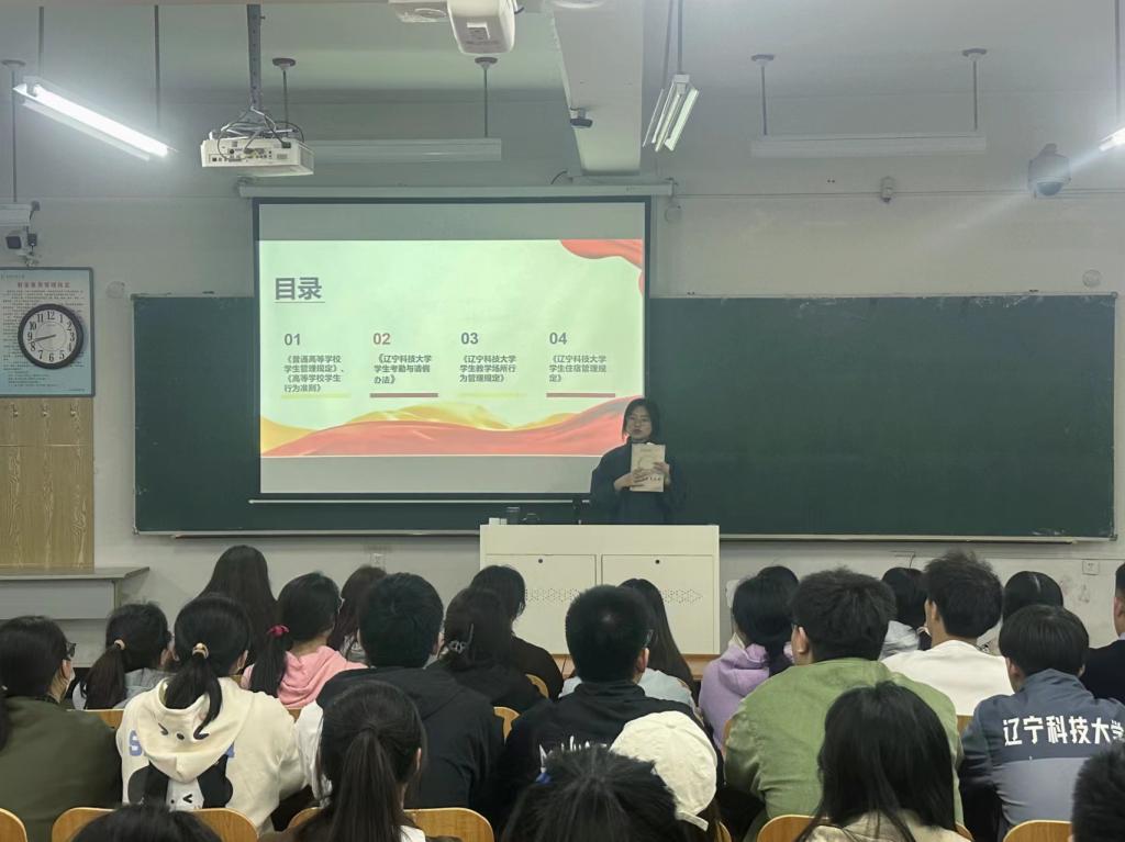 輔導(dǎo)員以“培育良好習(xí)慣,爭做時(shí)代新人”為主題,帶領(lǐng)學(xué)生深入學(xué)習(xí)了《普通高等學(xué)校學(xué)生管理規(guī)定》等管理辦法,重點(diǎn)講解了請(qǐng)假、住宿、獎(jiǎng)懲機(jī)制等方面的內(nèi)容。輔導(dǎo)員希望同學(xué)們能夠規(guī)范文明行為,明確學(xué)習(xí)目標(biāo),自覺養(yǎng)成良好學(xué)習(xí)和生活習(xí)慣。最后,輔導(dǎo)員對(duì)同學(xué)們進(jìn)行安全教育,確保學(xué)生在參與即將到來的運(yùn)動(dòng)會(huì)和享受五一假期的同時(shí),保持高度的安全意識(shí)、提高自我保護(hù)能力。