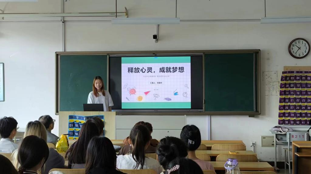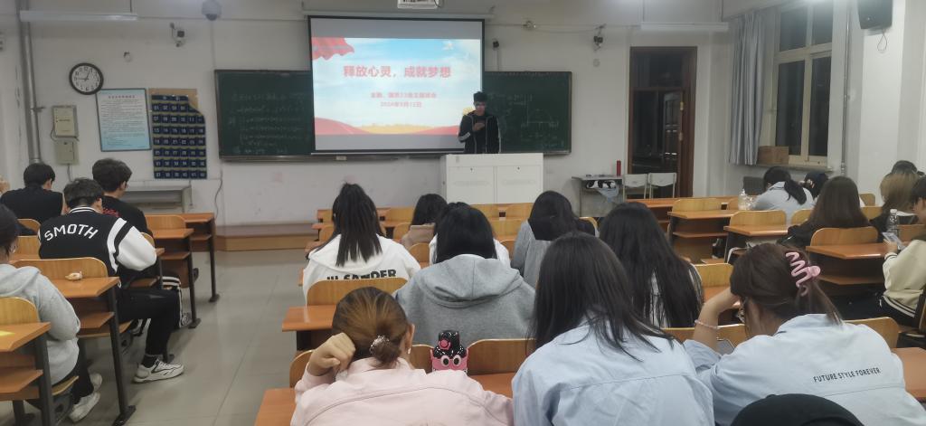 輔導員以“釋放心靈 成就夢想”為主題,向同學們普及心理健康知識、解析心理現象,帶領學生學習維護心理健康的方法,讓學生充分意識到心理健康的重要性,并和同學們分析了大學生常見的心理問題,鼓勵大家學會表達自己的情緒,大膽說出自己在學習生活中的困惑,在交流中尋找解決問題的方法,疏解心中的郁結。隨后,同學們紛紛表達自己對心理健康的認識和感受,談到了自己所面對的壓力和困惑,輔導員一一解答了學生的困擾。同時,輔導員表示,同學們要認識到每個人都是與眾不同的,要學會接納和欣賞自己,發現自我的獨特性,勇敢且堅定地去追求自己的夢想。