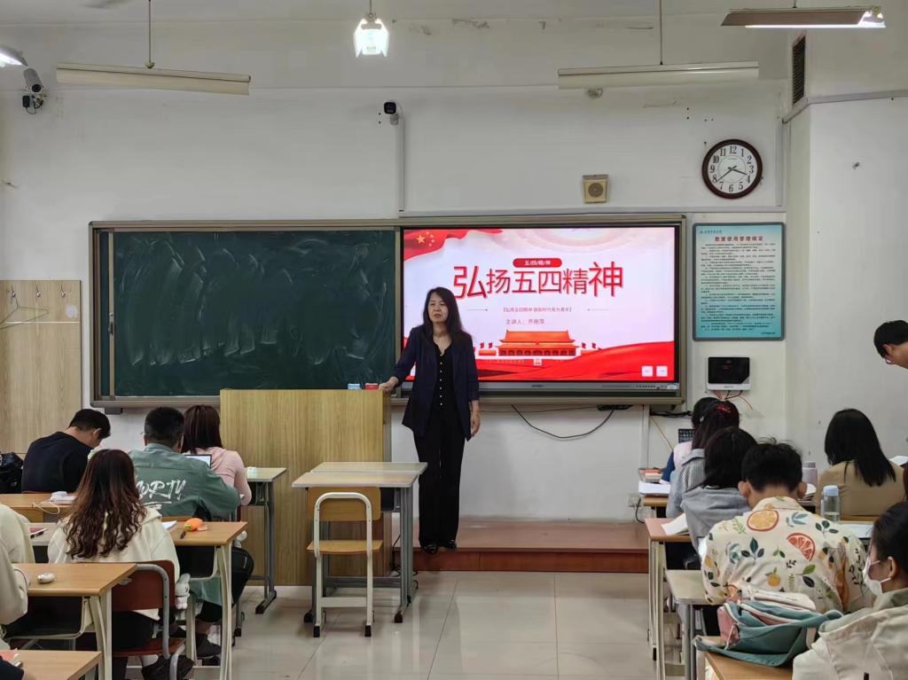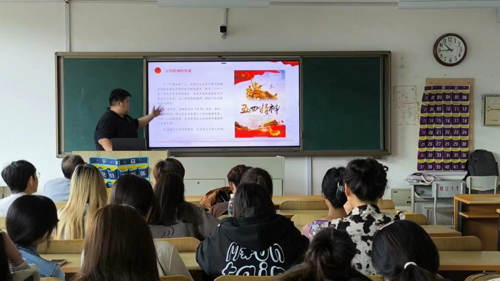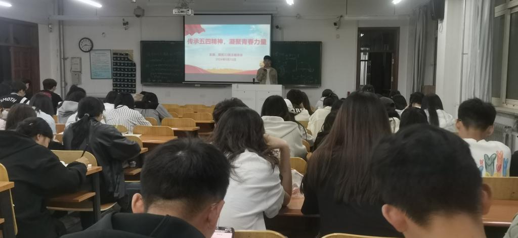 會上,輔導員以“傳承五四精神 凝聚青春力量”為主題,從“五四運動”的歷史背景及意義講起,帶領學生共同回望歷史,在一段段感人的故事中、在一份份炙熱的情感中了解“五四運動”的發展歷程,感悟革命先輩的初心使命和家國情懷。輔導員以各行各業的當代杰出青年為例來向同學們深入講解五四精神的內涵、五四精神的當代體現以及如何傳承五四精神等方面的內容,并帶領學生學習習近平總書記對青年的寄語,引導學生不辜負總書記的殷切期盼,大力弘揚和踐行五四精神,以奮斗姿態激揚青春,堅定信念、敏于求知,把個人的理想追求融入黨和國家事業中去,不負韶華、不負時代、不負人民。