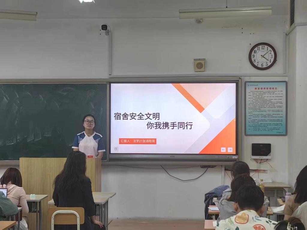 輔導員以“文明伴我行”為主題,通過列舉校園不文明寢室案例和分析學生在個人寢室衛生、寢室文化氛圍等方面存在的問題來讓學生更好地了解寢室衛生環境和寢室文化氛圍對大學生身心發展的重要影響,并通過列舉“‘經法男人幫’,相呼共奮進”的例子來引導學生提高文明素養,與寢室同學在學習和生活中相互激勵、共同進步。最后,輔導員表示,希望同學們在細節處約束自身行為,用實際行動踐行文明行為,在規范中創造價值,爭做新時代文明大學生。