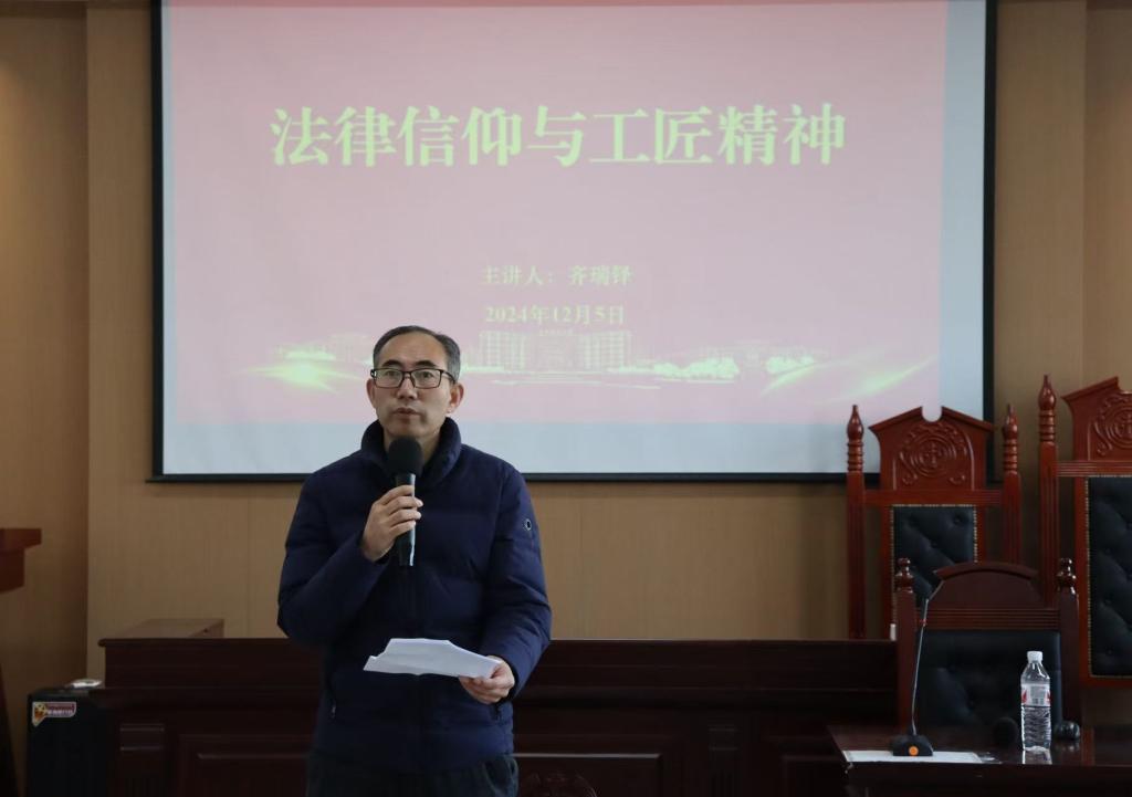 學院黨委副書記張國華對齊瑞鐸的到來致以誠摯的歡迎和感謝,介紹了本次講座的主題以及齊瑞鐸的學習和工作經歷。隨后,齊瑞鐸以身說法,結合自己在法學研究和實踐中的經驗,闡述了專業素養的重要性。他分享了多個典型案例,詳細講解了法律演變、走向以及律師現狀,強調法律信仰是法律職業生涯的根基,希望同學們在未來職業生涯中能堅定信仰,以法律法規為準繩,公正嚴明對待法律工作。通過生動的案例和深刻的剖析,齊瑞鐸讓師生們深刻感受到了法律信仰的力量?,F場法學氛圍濃厚,參會法學生紛紛表示受益匪淺。