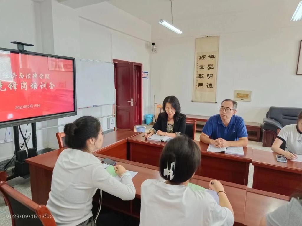 經(jīng)法學(xué)院召開寢室先鋒崗培訓(xùn)工作會(huì)為充分發(fā)揮寢室先鋒崗的引領(lǐng)示范作用,推動(dòng)先鋒崗工作落實(shí)落地見成效,9月15日,經(jīng)法學(xué)院于博識樓A313召開先鋒崗培訓(xùn)會(huì)。學(xué)院黨委副書記張國華、學(xué)辦主任齊艷萍出席會(huì)議,2023級全體先鋒崗成員參加。