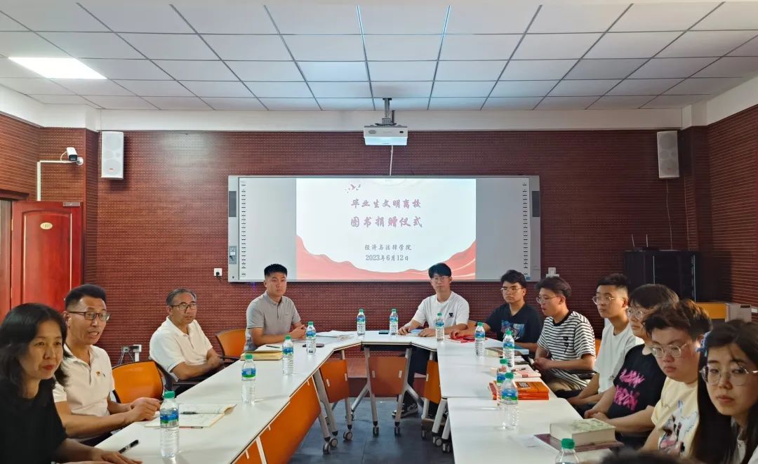 6月12日下午,經法學院于博識樓A407召開2023屆畢業生座談會暨圖書捐贈儀式。經法學院黨委書記趙智博、院長郭浩淼、黨委副書記張國華、學辦主任齊艷萍、團委副書記張鵬飛以及2023屆畢業生代表出席本次活動。