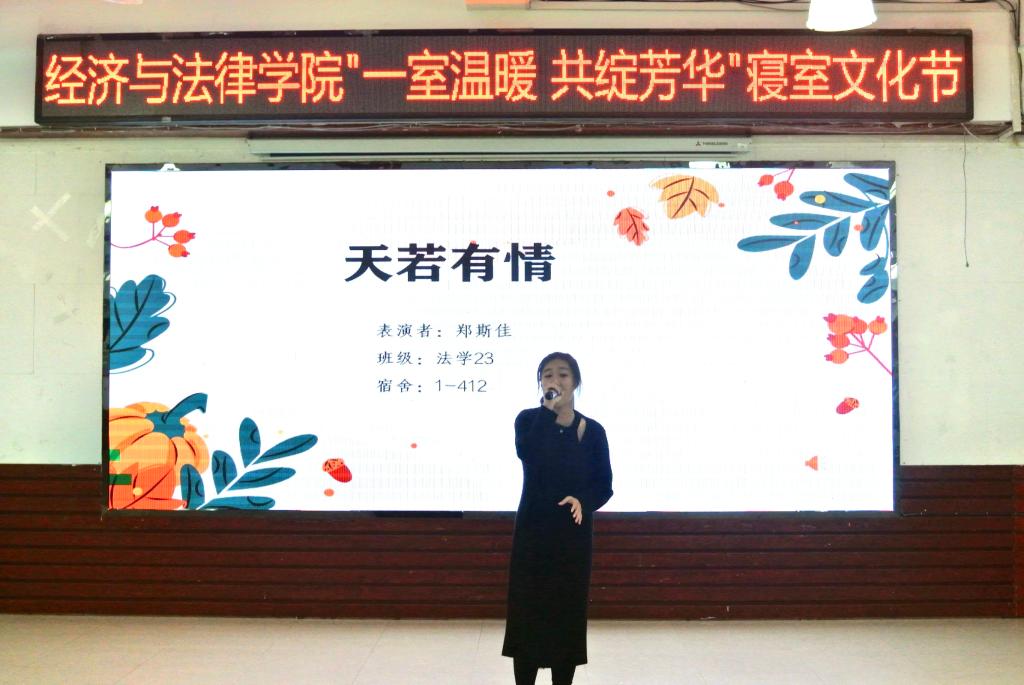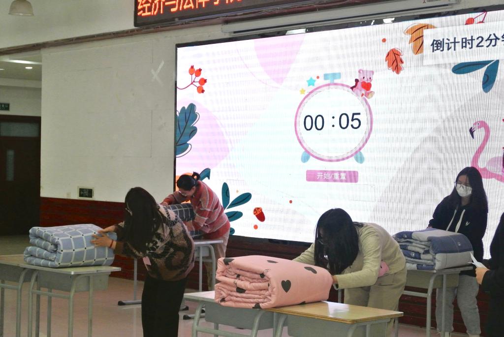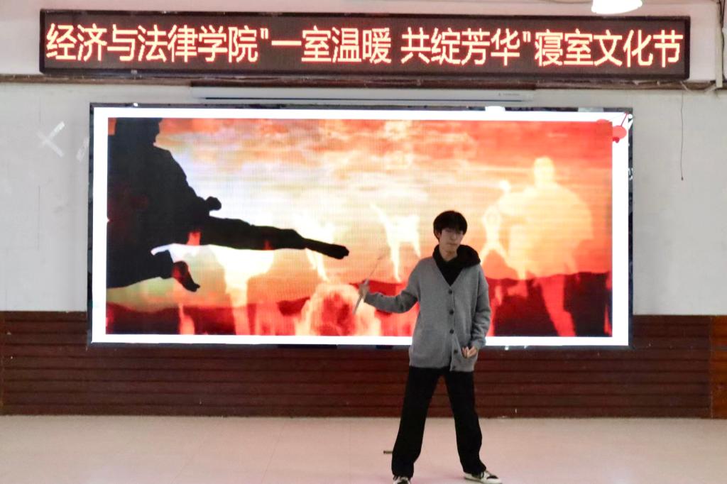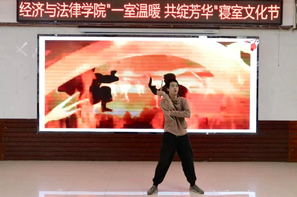 活動中,Vshow舞團(tuán)開場的精彩表演點燃了觀眾的熱情,現(xiàn)場氣氛瞬間升溫,活動正式拉開序幕。本次寢室文化節(jié)共分為“寢室vlog大賽”“才藝大賽”和“疊被子大賽”三個環(huán)節(jié)。隨著全場熱烈的掌聲,“寢室vlog大賽”將各參賽寢室成員們精彩紛呈的寢室生活呈現(xiàn)在觀眾眼前。選手們通過照片、視頻、采訪等各種各樣的形式記錄了寢室成員之間的點點滴滴,展現(xiàn)了寢室生活的溫馨日常以及各寢室成員們獨特的閃光點。“才藝大賽”上,選手們各顯神通,給觀眾帶來了一場視聽盛宴。小品《勇闖301》以詼諧的劇情、滑稽的動作讓現(xiàn)場笑聲不斷;歌曲《年輪》、詩朗誦《面朝大海,春暖花開》、舞蹈串燒等表演以充沛飽滿的情感詮釋了經(jīng)法學(xué)子們積極向上、意氣飛揚的寢室風(fēng)采,體現(xiàn)了寢室成員們熱情奔放的精神面貌,贏得了在場老師和同學(xué)們的陣陣掌聲。修明武術(shù)協(xié)會和金融21班秦煜寧的串場表演以及“抱團(tuán)游戲”將氣氛再次推向高潮,現(xiàn)場歡呼喝彩聲不斷。“疊被子大賽”環(huán)節(jié)中,隨著主持人一聲令下,參賽同學(xué)迅速進(jìn)入狀態(tài),即便兩位主持人不斷提問干擾,選手們依然細(xì)致認(rèn)真地整理被子,現(xiàn)場氣氛熱烈,歡呼不斷。兩分鐘后,一塊塊棱角分明的“豆腐塊"展現(xiàn)在觀眾面前,贏得了觀眾的熱烈掌聲。由韋敏玲、何運來、周思彤為大家?guī)淼奈璧复疅硌菥式^倫,令人印象深刻。