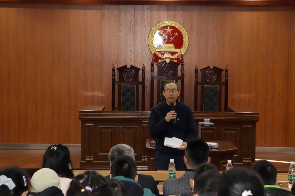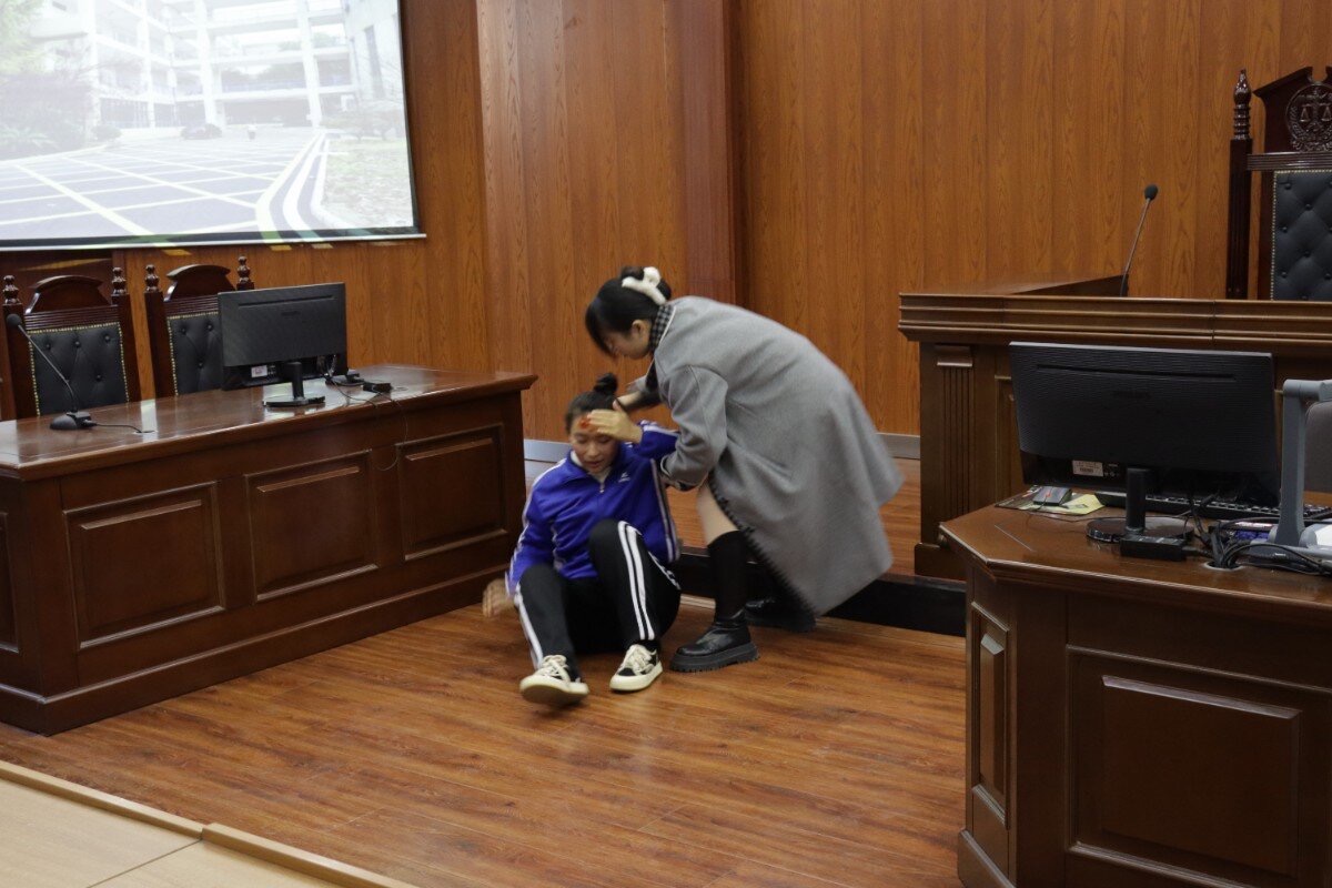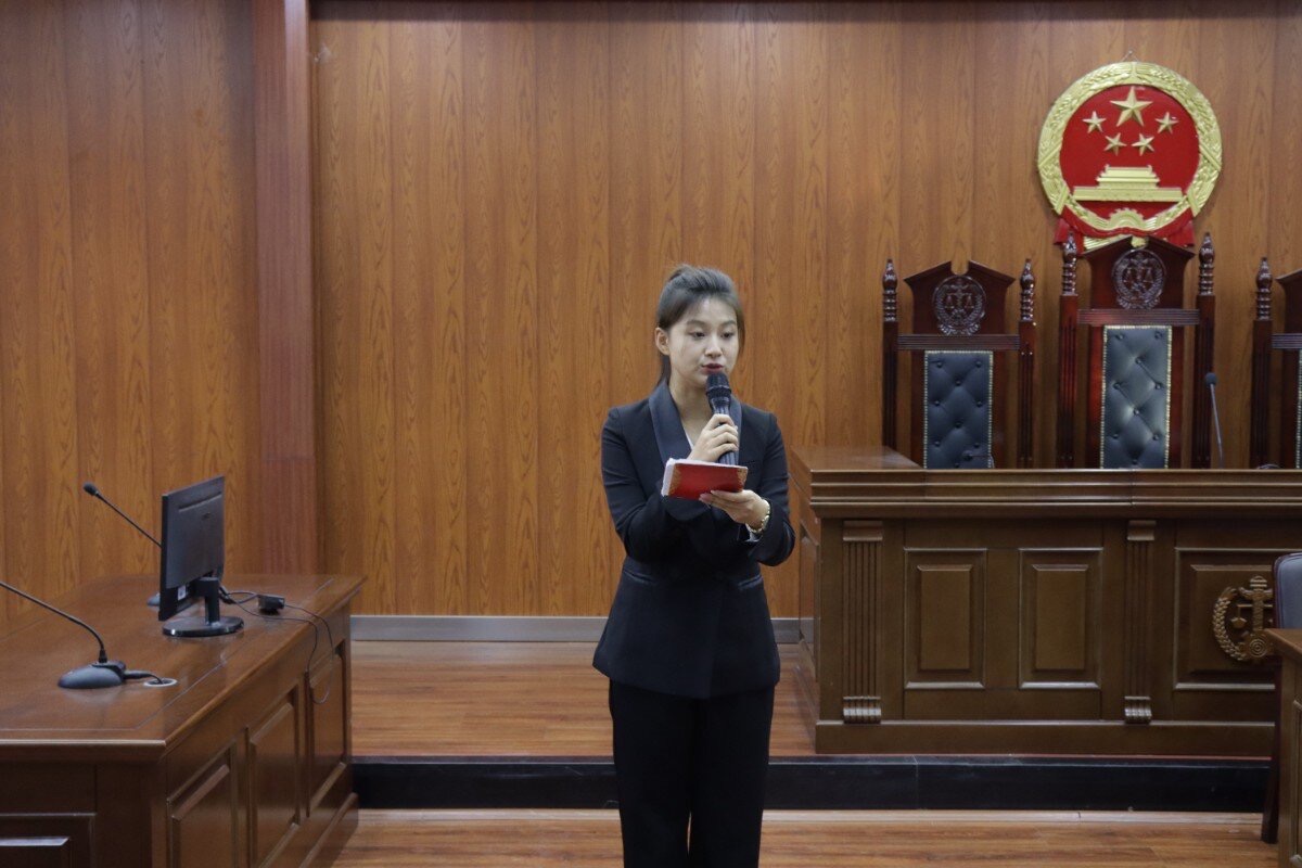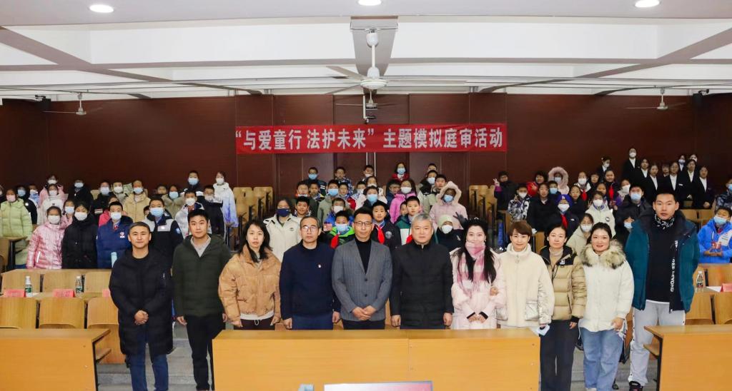 在國家憲法日來臨之際,11月30日,經(jīng)法學院于明德樓A214開展“與愛童行,法護未來”主題模擬庭審展演活動。活動邀請鞍山華育高新區(qū)學校160余名師生走進模擬法庭現(xiàn)場,觀看模擬庭審活動。