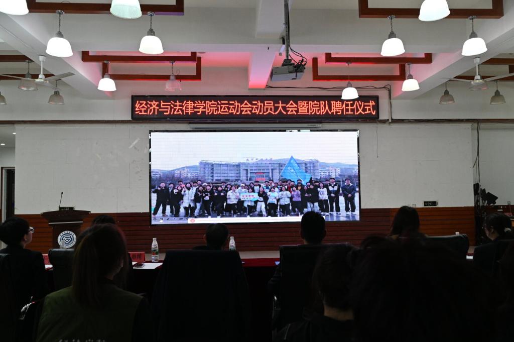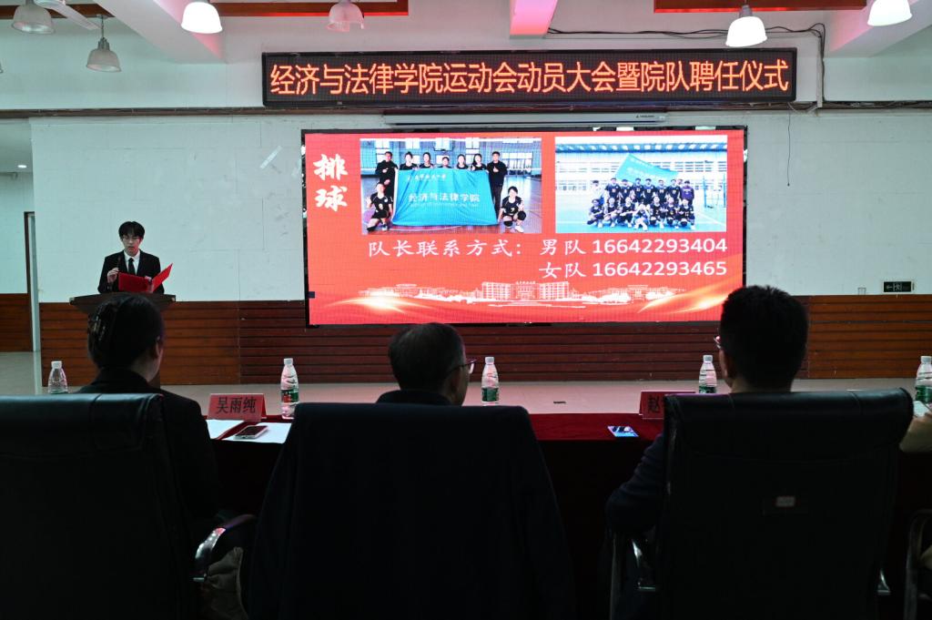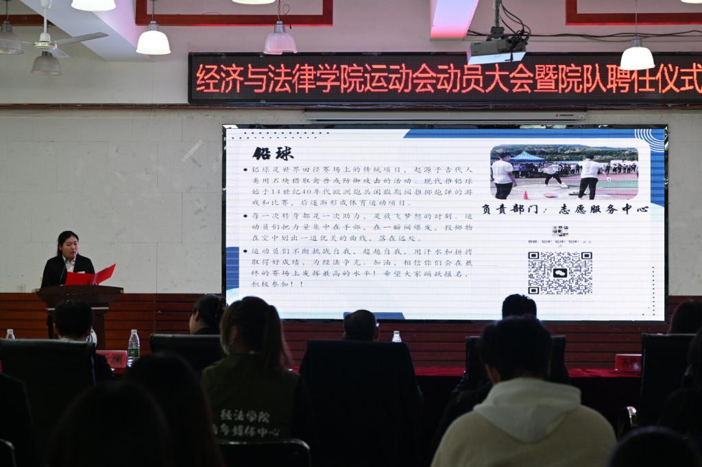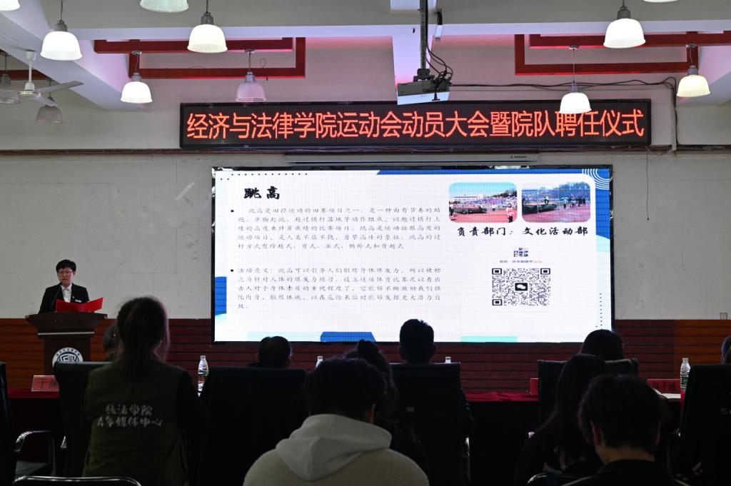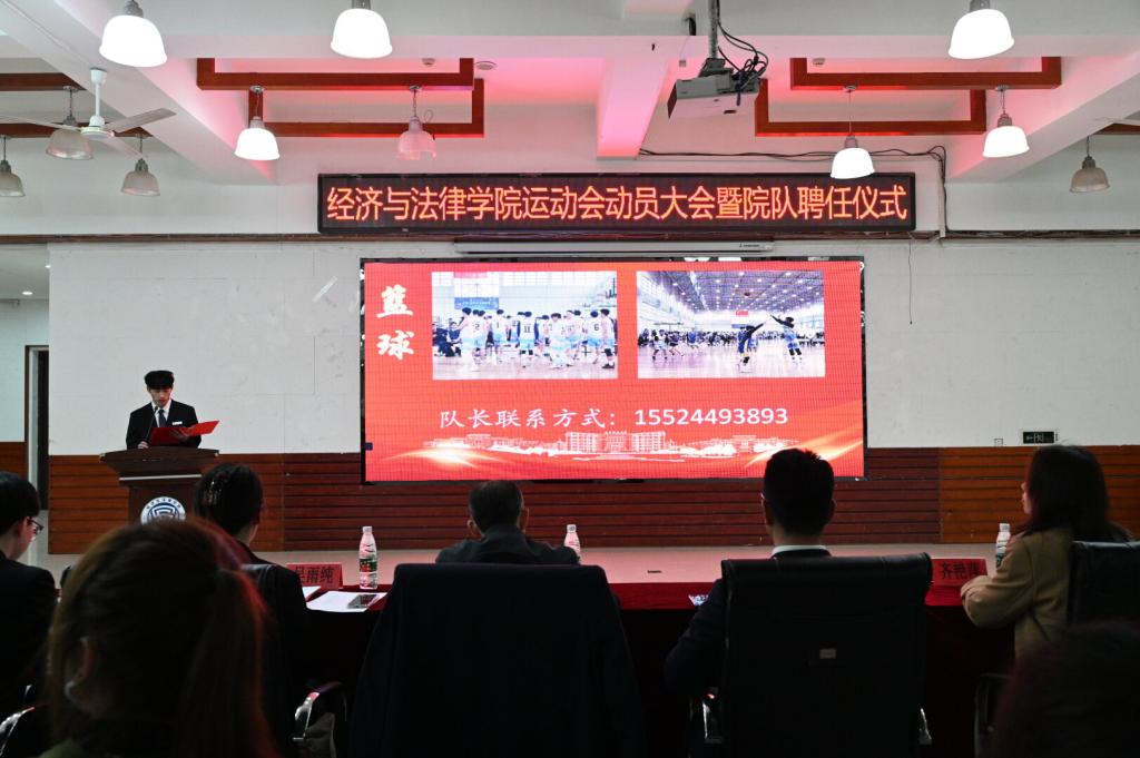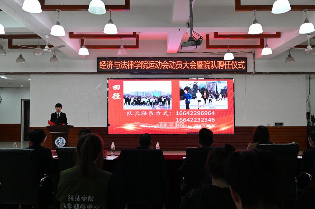 4月2日,經(jīng)法學(xué)院于明德樓大學(xué)生活動中心召開運(yùn)動會動員大會暨院隊(duì)聘任儀式。本次大會由經(jīng)法學(xué)院團(tuán)委副書記張鵬飛主持,學(xué)院黨委書記趙智博、黨委副書記張國華、學(xué)辦主任齊艷萍出席會議,學(xué)院各院隊(duì)正、副隊(duì)長、全體團(tuán)學(xué)骨干以及2023級全體學(xué)生共計(jì)300余人參加會議。