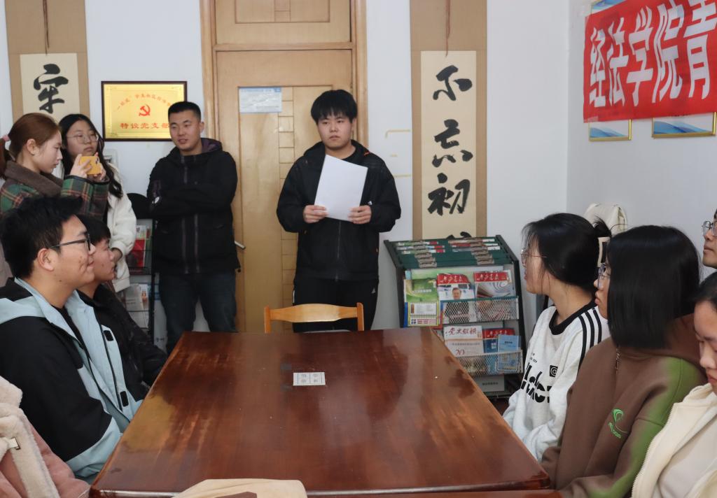3月29日,經(jīng)法學(xué)院于知行居103黨團(tuán)活動(dòng)室開展“一站式”學(xué)生社區(qū)沙龍--專業(yè)知識(shí)導(dǎo)航未來(lái)職場(chǎng)主題活動(dòng)。本次活動(dòng)由學(xué)院學(xué)生會(huì)生活權(quán)益部干事申佳鷺主持,金融科技22-2劉浩辰作學(xué)習(xí)經(jīng)驗(yàn)分享,經(jīng)法學(xué)院共計(jì)18名2023級(jí)本科生參加活動(dòng)。