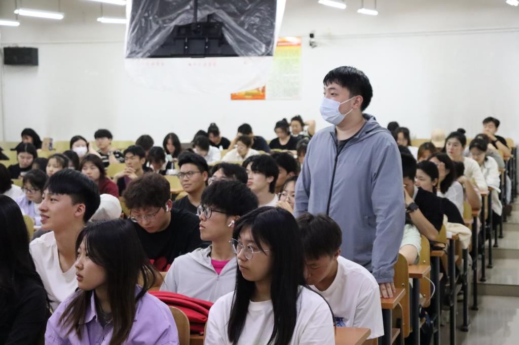 會議最后,同學們踴躍發言,提出自己在學習和備考中的疑惑,畢業生們耐心且詳細地解答了大家的問題。同時,他們表示希望同學們都能夠保持住學習的熱忱,嚴格要求自己,夯實專業基礎,并祝愿同學們都能找到自己的方向,在努力過后如愿以償。