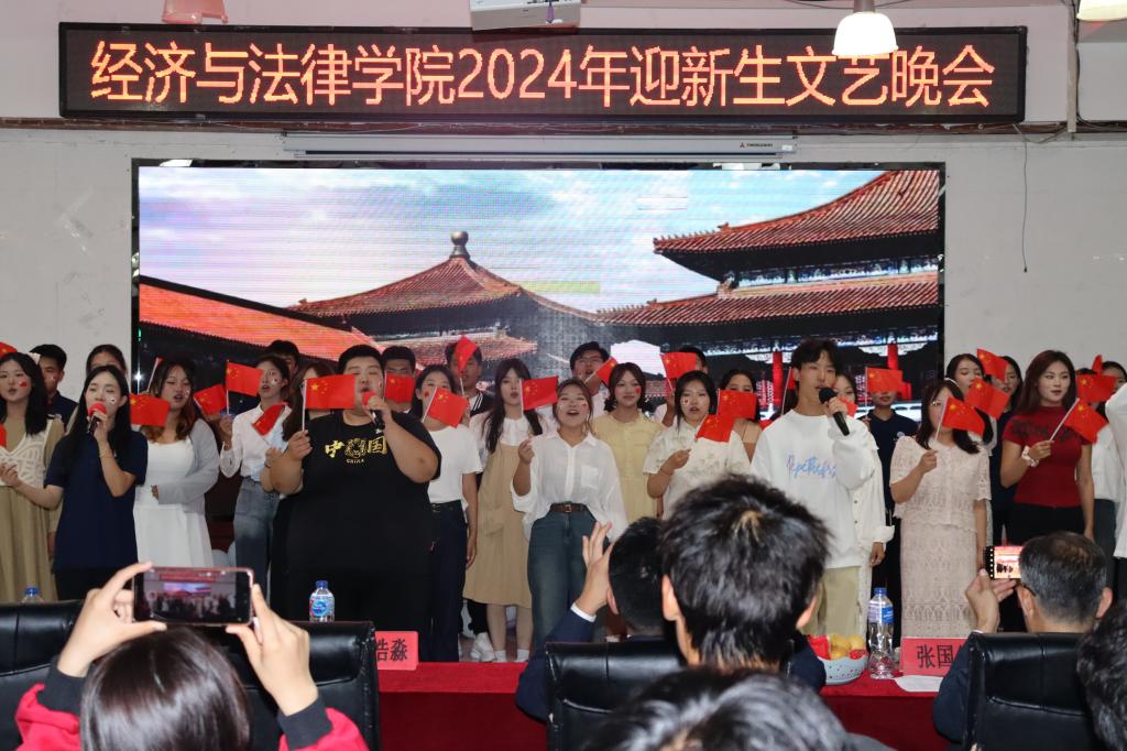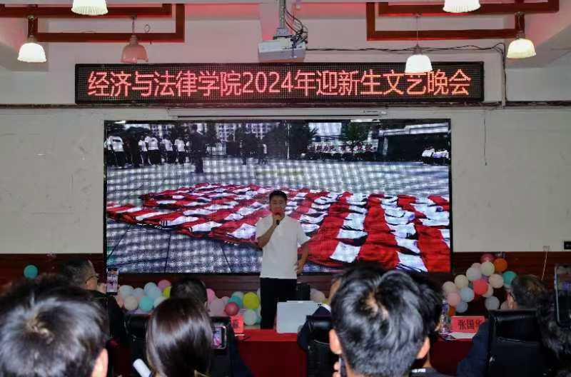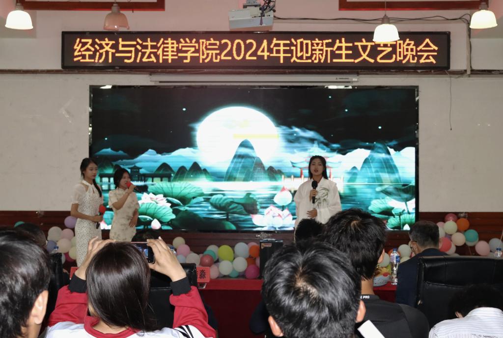 共賞中秋月,人間話團圓。9月17日晚,經法學院于明德樓大學生活動中心舉辦了以“中秋同國慶 師生共團圓”為主題的迎新生文藝晚會。學院黨政領導及輔導員、團學骨干、新生班導生以及全體2024級新生近300人觀看了本場演出。