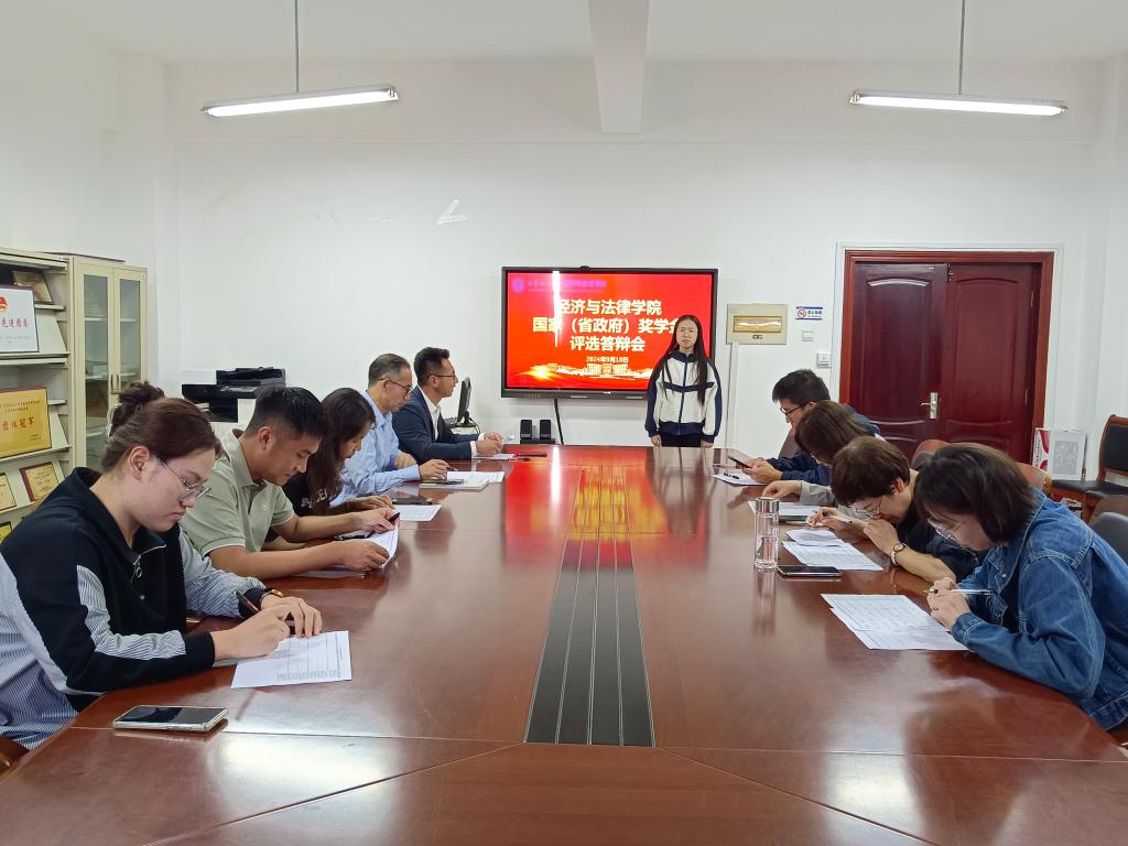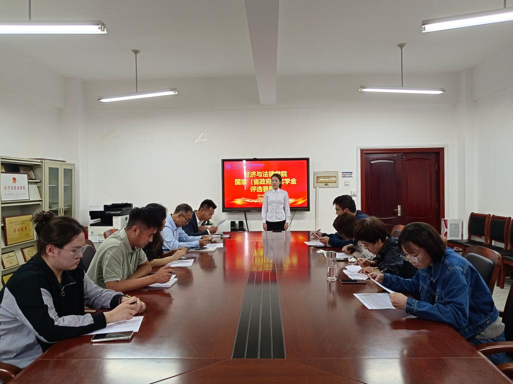 為發(fā)揮獎(jiǎng)學(xué)金激勵(lì)作用以及優(yōu)秀學(xué)生的示范引領(lǐng)作用,9月18日下午,經(jīng)法學(xué)院于博識(shí)樓A305召開2023-2024學(xué)年度本科生國家(省政府)獎(jiǎng)學(xué)金答辯評(píng)選會(huì)。評(píng)委會(huì)由經(jīng)法學(xué)院學(xué)生工作負(fù)責(zé)人、學(xué)辦主任、輔導(dǎo)員以及班主任、任課教師和學(xué)生代表組成,經(jīng)學(xué)生申請(qǐng)、學(xué)院評(píng)議后,共11名候選人進(jìn)入本次答辯。