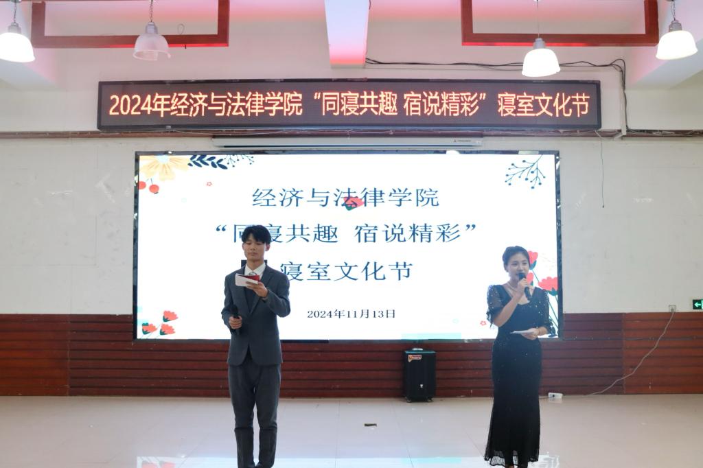 11月13日晚,經法學院于明德樓大學生活動中心舉辦“同寢共趣 宿說精彩”寢室文化節。經法學院黨委副書記張國華、團委副書記張鵬飛、團學骨干以及2024級新生共計300余人參加了本次活動。