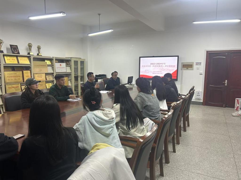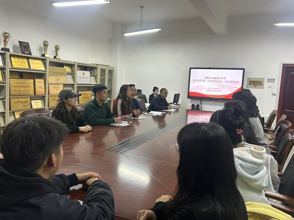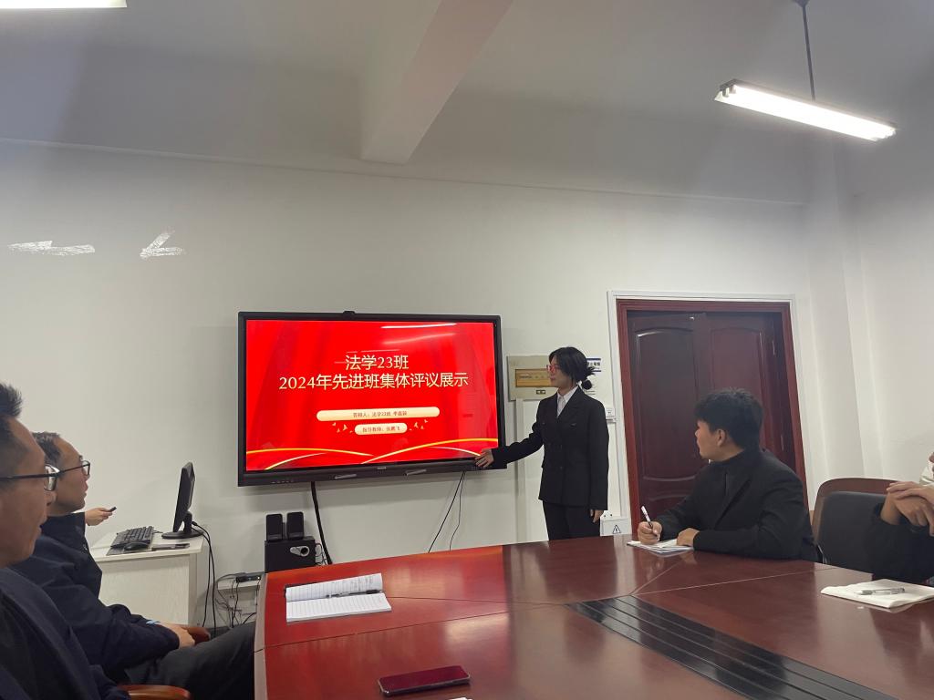 為進一步加強學風建設,引導各班級成員銳意進取、追求卓越,10月18日,經法學院于博識樓A503舉辦“2023-2024學年優良學風班(先進班集體)”評比答辯會。學院黨委書記趙智博、黨委副書記張國華、學辦主任齊艷萍、團委副書記張鵬飛擔任評委,學生會執行主席兼辦公室負責人趙心豪及24級學生代表參加本次答辯活動。