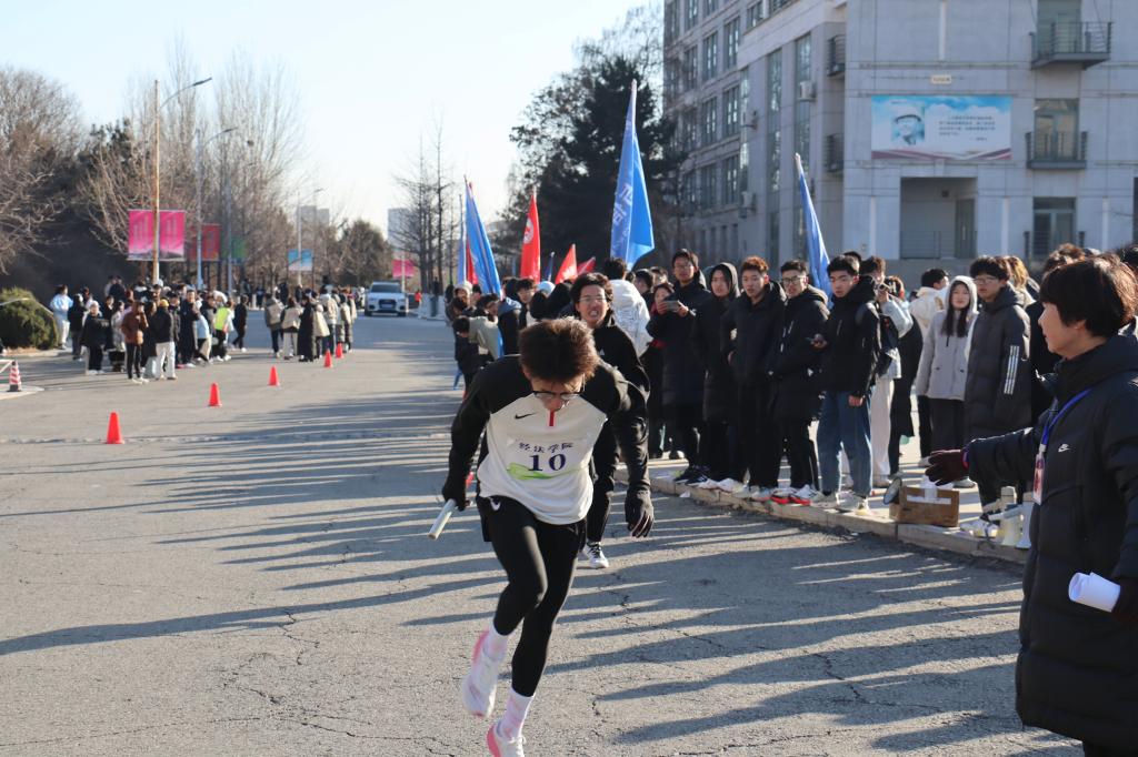 本次比賽為男女雙組競技,各學院男女各10位運動精英,以環校接力的方式展開激烈角逐。上午9:00,隨著一聲發令槍響,比賽正式拉開帷幕。寒風凜冽,但運動員們的斗志絲毫未減。賽場上,運動員們你追我趕,每一次交接棒都充滿了緊張與期待,每一次沖刺都凝聚著團隊的力量與信念。賽道旁,歡呼吶喊聲交織,冬日的寒意被這股青春活力驅散,激勵著運動員們不斷向前。當最后一抹身影劃破終點線的那一刻,時間見證了努力的回報,汗水鑄就的輝煌在陽光下熠熠生輝。