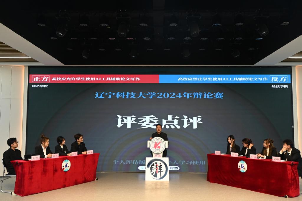辯論過程中,雙方辯手以“高校應允許/禁止學生使用AI工具輔助論文寫作”為辯題,我方一辯選手以具體實例和相關領域的專業研究結果為依據,通過分析學生使用AI工具輔助論文寫作所帶來的一系列弊端有力地闡明了“高校應禁止學生使用AI工具輔助論文寫作”的己方觀點。同時,我院辯手針對對方論述中出現的漏洞展開反擊,現場氣氛熱烈,火花四濺。小結環節,我方辯手在總結己方觀點的同時結合現場情況,以更深層次的解析將整場辯論推向高潮,準確而有力的展現了我方觀點。最終,經過評委們的嚴謹評審,經法學院辯論隊斬獲了遼寧科技大學大學生辯論賽的冠軍!
