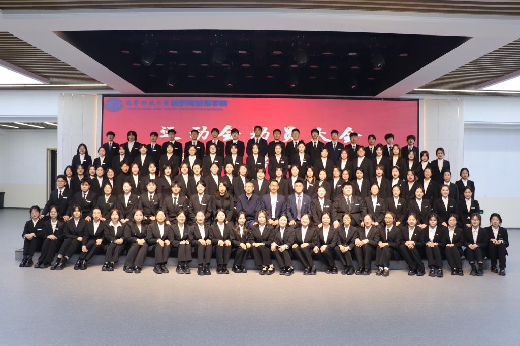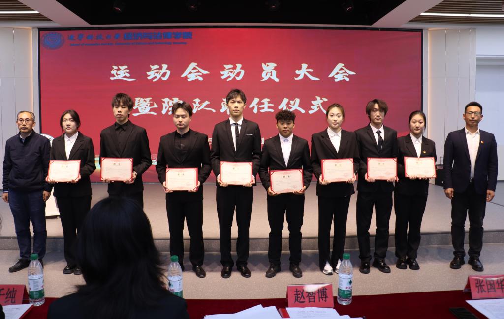 4月11日,經法學院于明德樓大學生活動中心召開第53屆校運動會動員大會暨院隊聘任儀式。本次大會由學院團委副書記張鵬飛主持,學院黨委書記趙智博、黨委副書記張國華、學辦主任齊艷萍出席,學院各院隊正、副隊長、全體團學骨干以及2024級全體學生共計300余人參加會議。