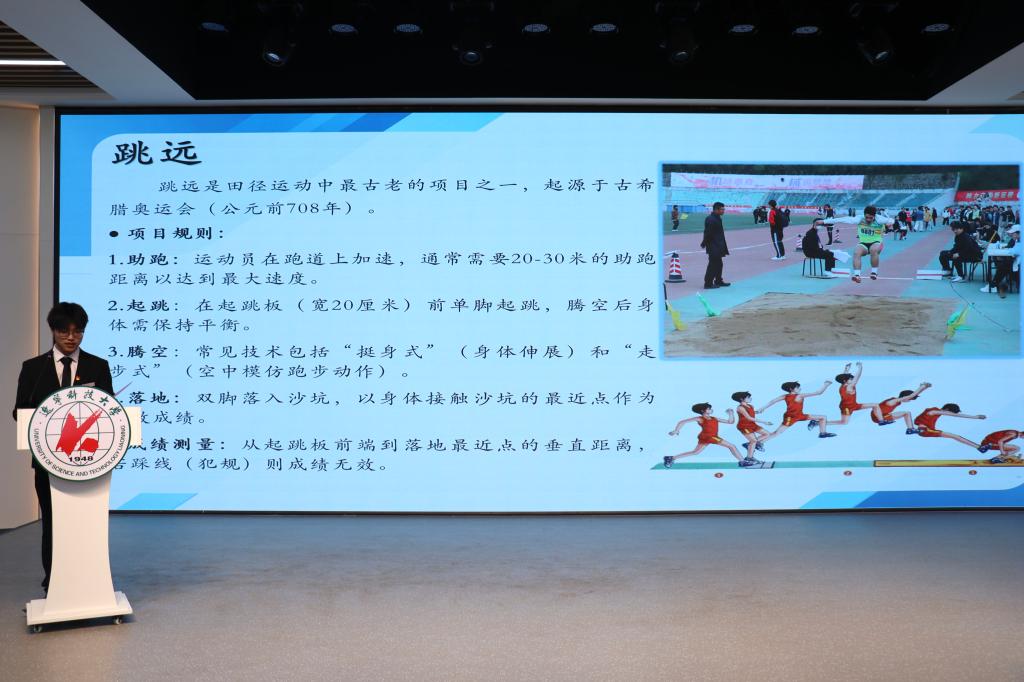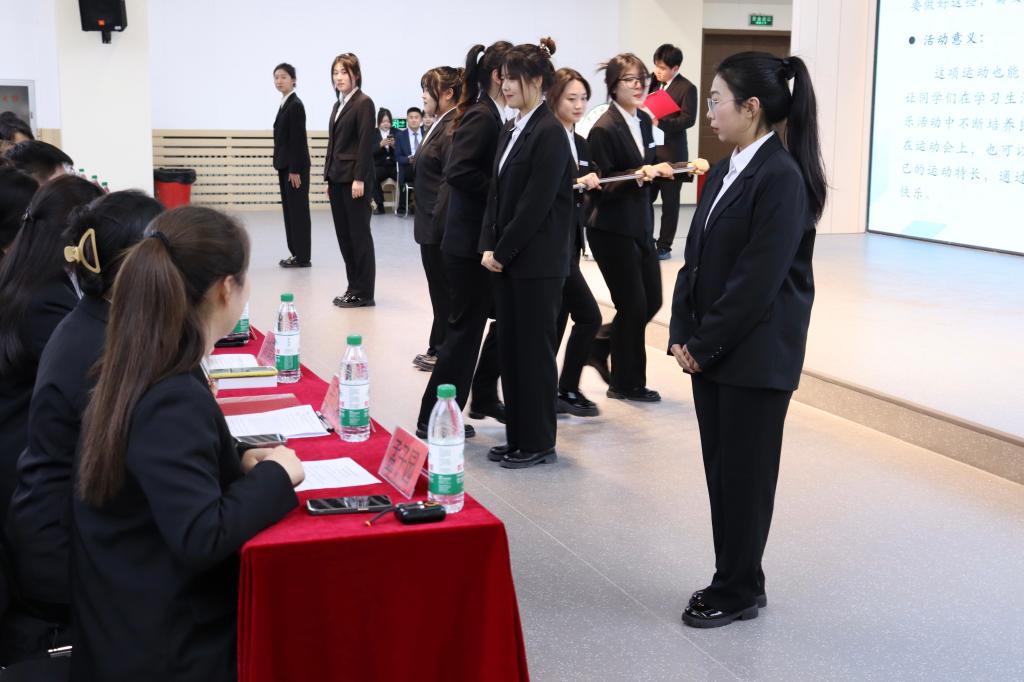 在張鵬飛的帶領下,現場師生共同觀看了經法學院在第52屆運動會中精彩表現的視頻,運動員們矯健的身姿和拼搏的身影,點燃了與會同學心中的激情。重溫高光時刻,同學們深刻感受到體育的魅力和力量。國貿24-2班體育委員趙書白作為運動員代表發言,他表示,經法學院全體運動員在今后的訓練中,定會團結一致、認真刻苦;發揚“更高,更快,更強”精神,在賽場上遵守規則、拼搏奮進;用實際行動詮釋對體育的熱愛,為經法學院的體育事業添磚加瓦,爭取不負眾望,再創佳績。隨后,運動會各項目負責人依次登臺,從項目內容、競賽規則、運動技巧及注意事項等多方面進行詳細介紹,并通過觀看視頻以及現場演示的方式生動地展現了各項目的運動要領,讓同學們對運動會項目有了更直觀的了解,極大地激發了同學們的參與熱情。