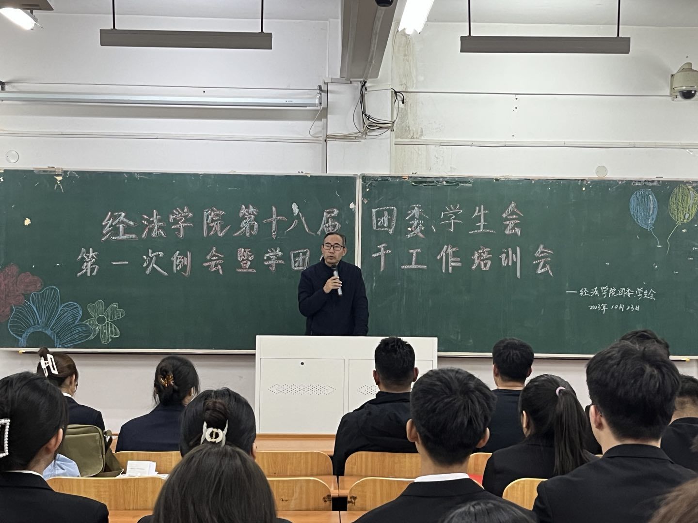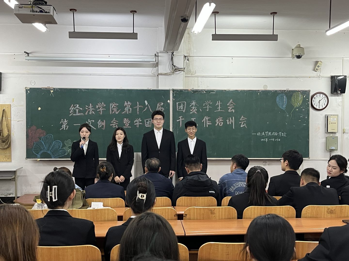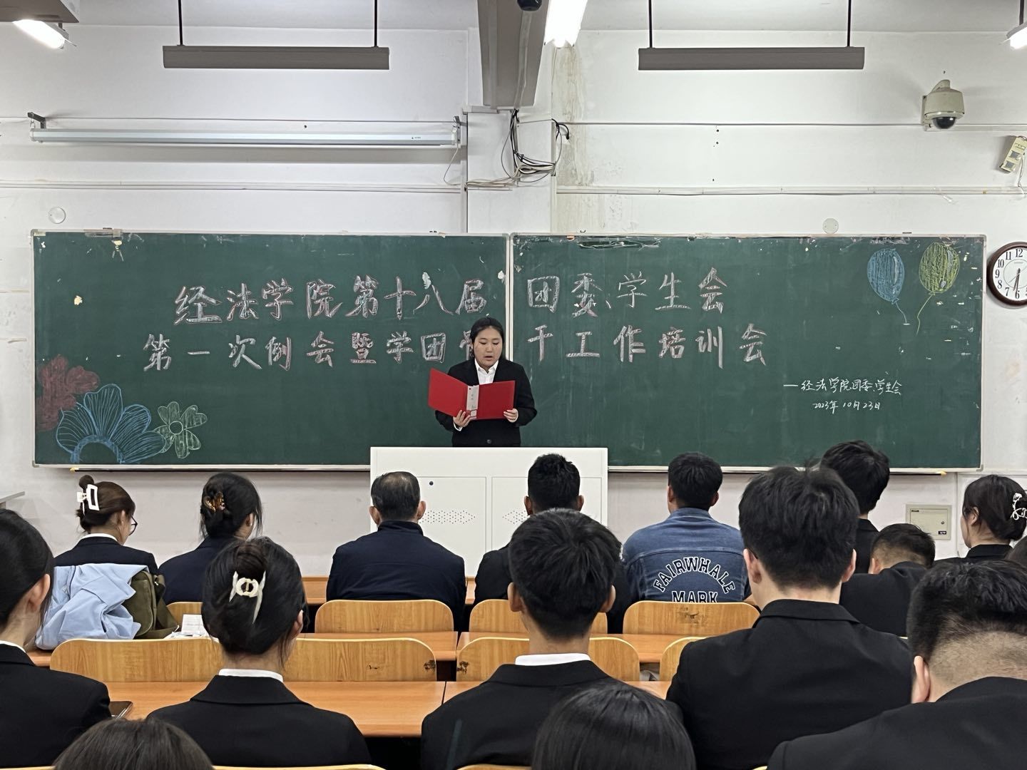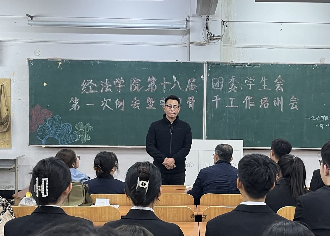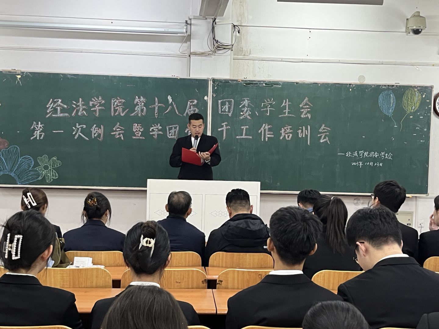 10月23日下午,經(jīng)法學(xué)院第十八屆團(tuán)委、學(xué)生會(huì)第一次例會(huì)暨學(xué)團(tuán)骨干工作培訓(xùn)會(huì)在博學(xué)樓C112舉行。學(xué)院黨委書(shū)記趙智博、黨委副書(shū)記張國(guó)華、團(tuán)委副書(shū)記張鵬飛出席會(huì)議,經(jīng)法學(xué)院學(xué)生會(huì)全體學(xué)團(tuán)骨干參加了本次會(huì)議。會(huì)議由經(jīng)法學(xué)院第十八屆學(xué)生會(huì)執(zhí)行主席兼辦公室負(fù)責(zé)人吳雨純主持。