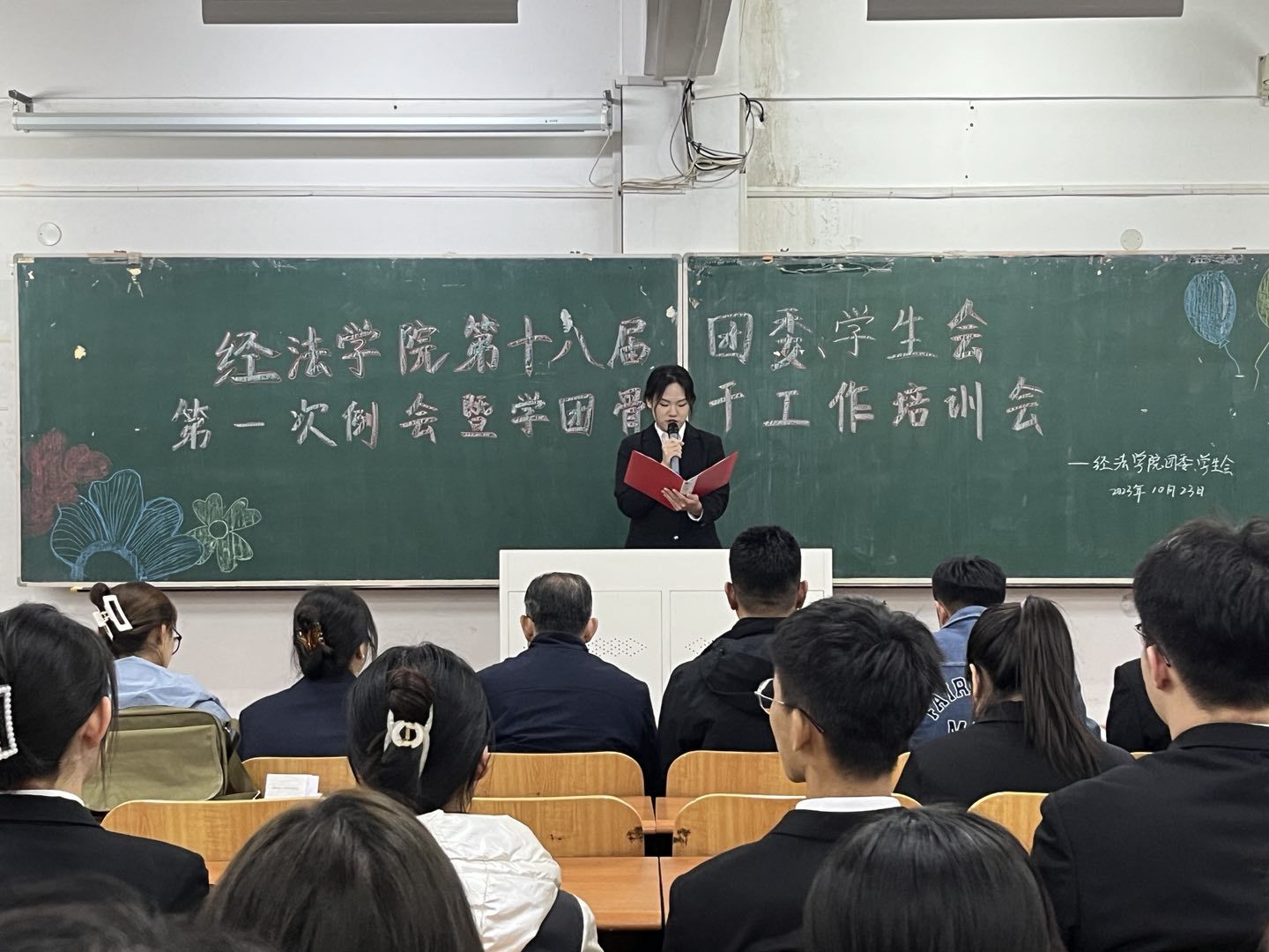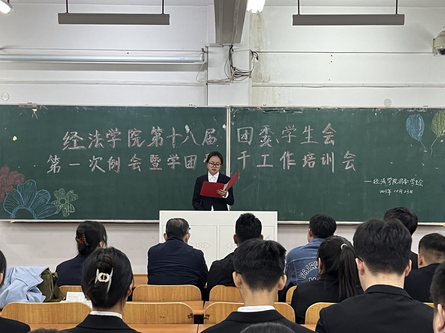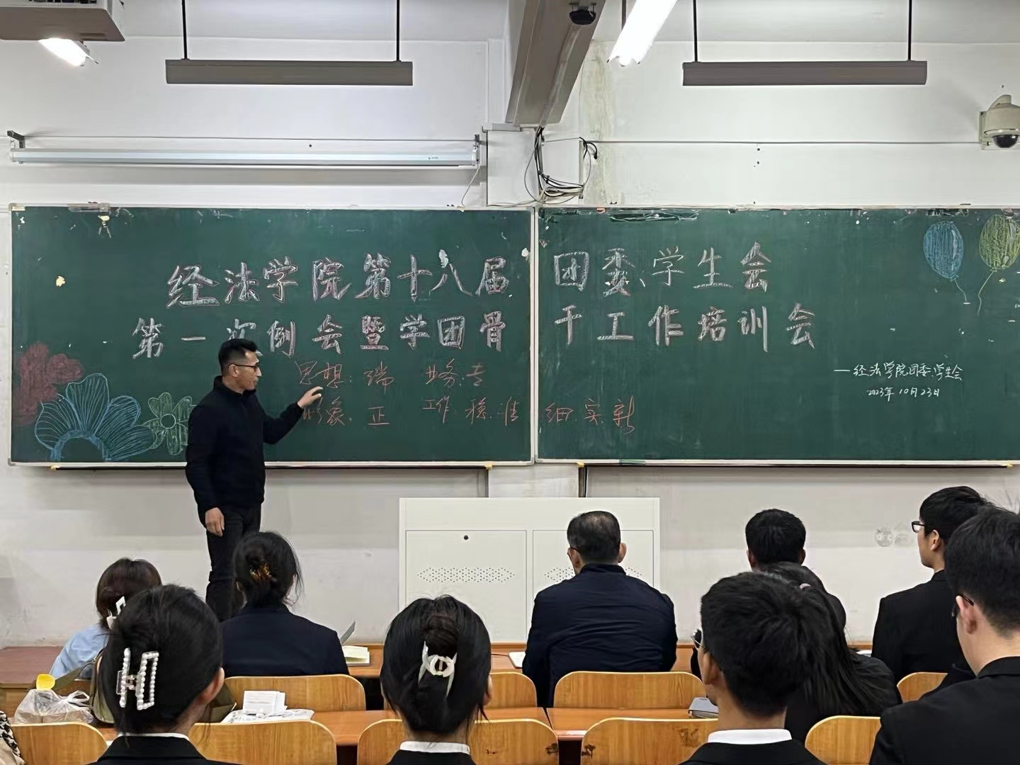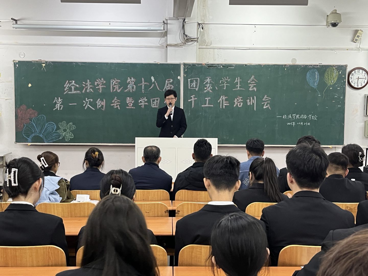10月23日下午,經(jīng)法學(xué)院第十八屆團(tuán)委、學(xué)生會(huì)第一次例會(huì)暨學(xué)團(tuán)骨干工作培訓(xùn)會(huì)在博學(xué)樓C112舉行。學(xué)院黨委書(shū)記趙智博、黨委副書(shū)記張國(guó)華、團(tuán)委副書(shū)記張鵬飛出席會(huì)議,經(jīng)法學(xué)院學(xué)生會(huì)全體學(xué)團(tuán)骨干參加了本次會(huì)議。會(huì)議由經(jīng)法學(xué)院第十八屆學(xué)生會(huì)執(zhí)行主席兼辦公室負(fù)責(zé)人吳雨純主持。