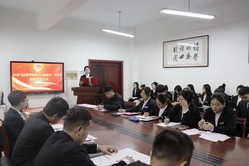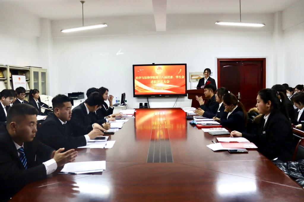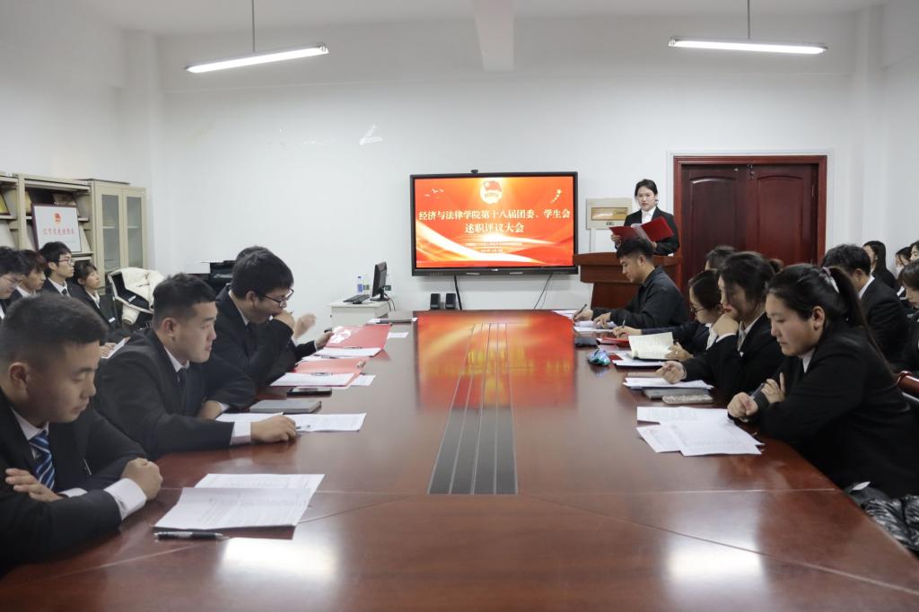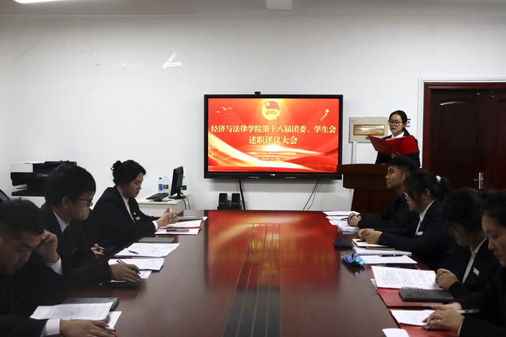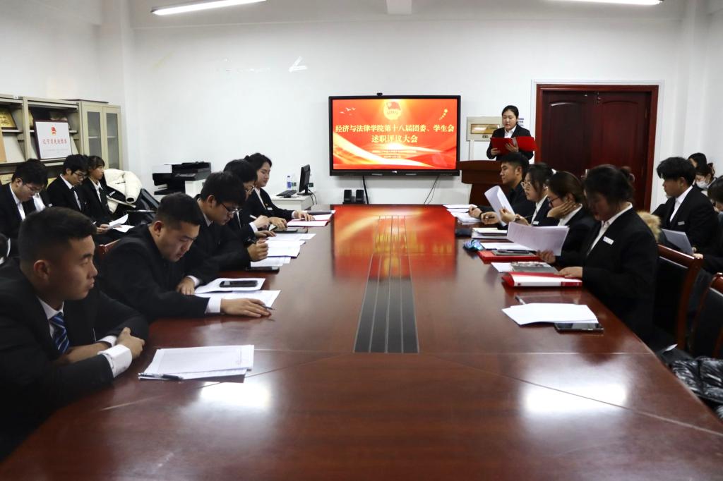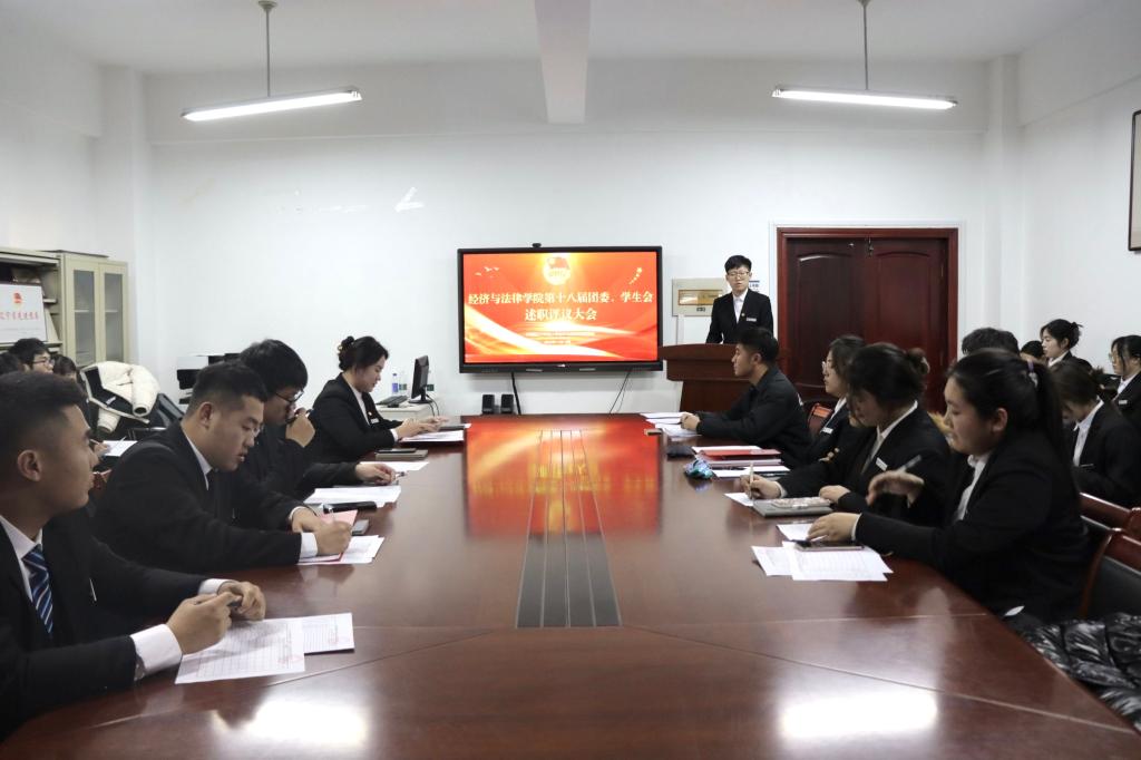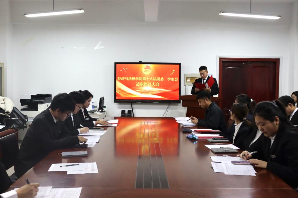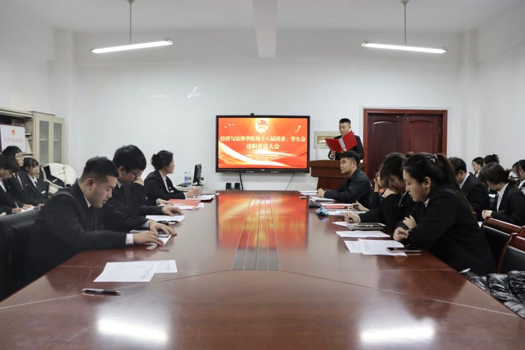 12月12日下午,經法學院于博識樓A305召開第十八屆團委、學生會述職評議會,學院團委副書記張鵬飛及全體團學骨干參加了本次會議。會議由學生會執行主席兼辦公室負責人吳雨純主持。