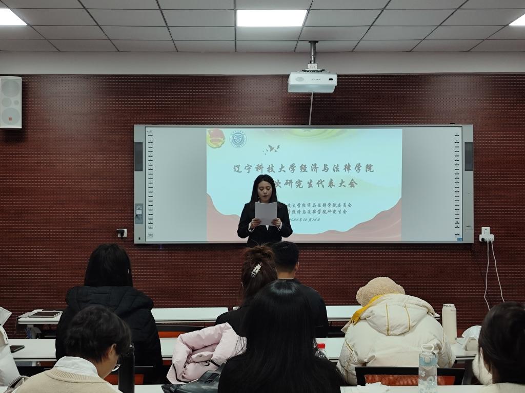 12月14日晚,經法學院于博識樓A407召開第五次研究生代表大會。會議由經法學院第四屆研究生會辦公室負責人孟依主持,經法學院團委副書記張鵬飛、學院團學骨干及39名研究生代表出席會議。