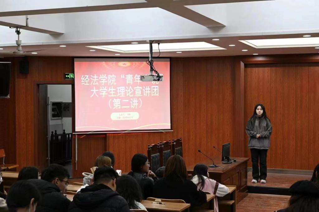 4月2日,經法學院于明德樓A214開展“青年·說”大學生理論宣講,此次宣講由經法學院宣講團成員、分團委社團與實踐指導中心干事宋昕擔任主講人,經法學院團學骨干共計70人參加了此次活動。