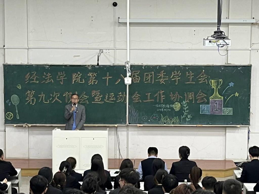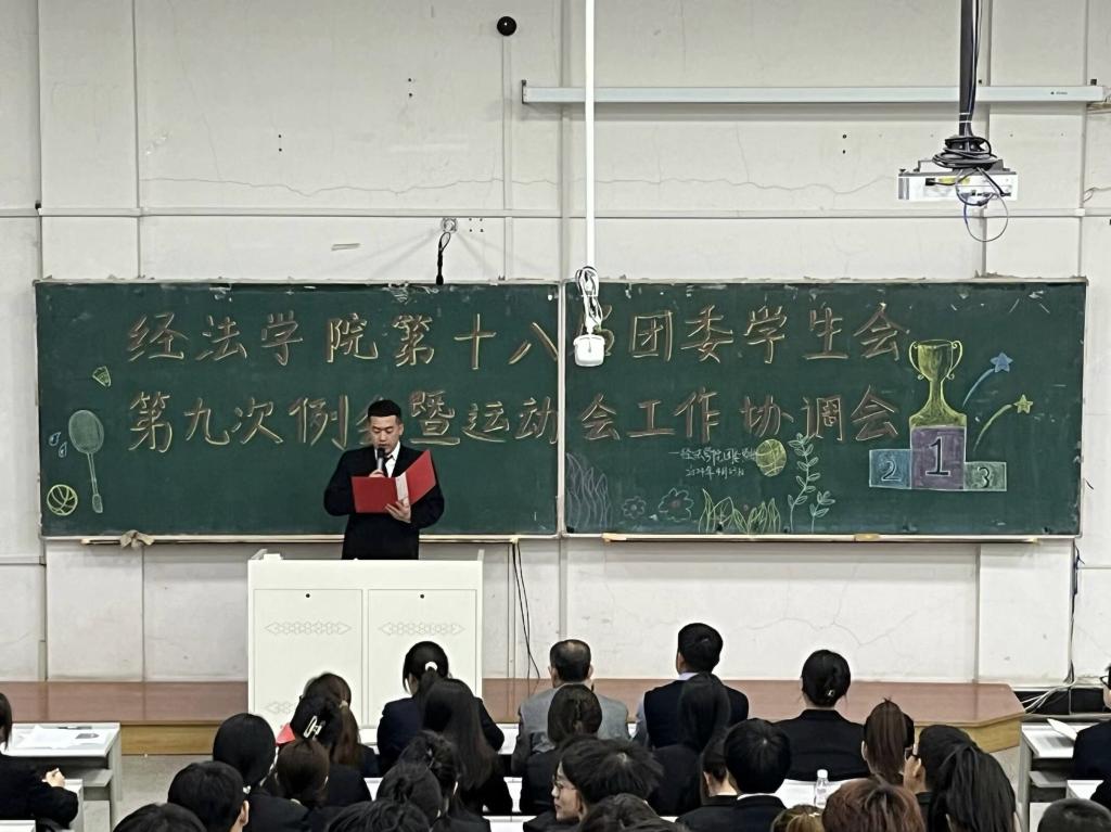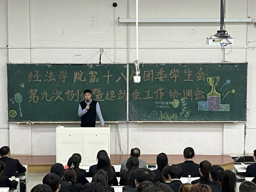 4月23日,經法學院于博學樓C302召開第十八屆團委、學生會第九次例會暨運動會工作協調會。本次會議由學院團委副書記張鵬飛主持,學院黨委副書記張國華出席會議、全體團學骨干以及運動員共計160余人參加會議。